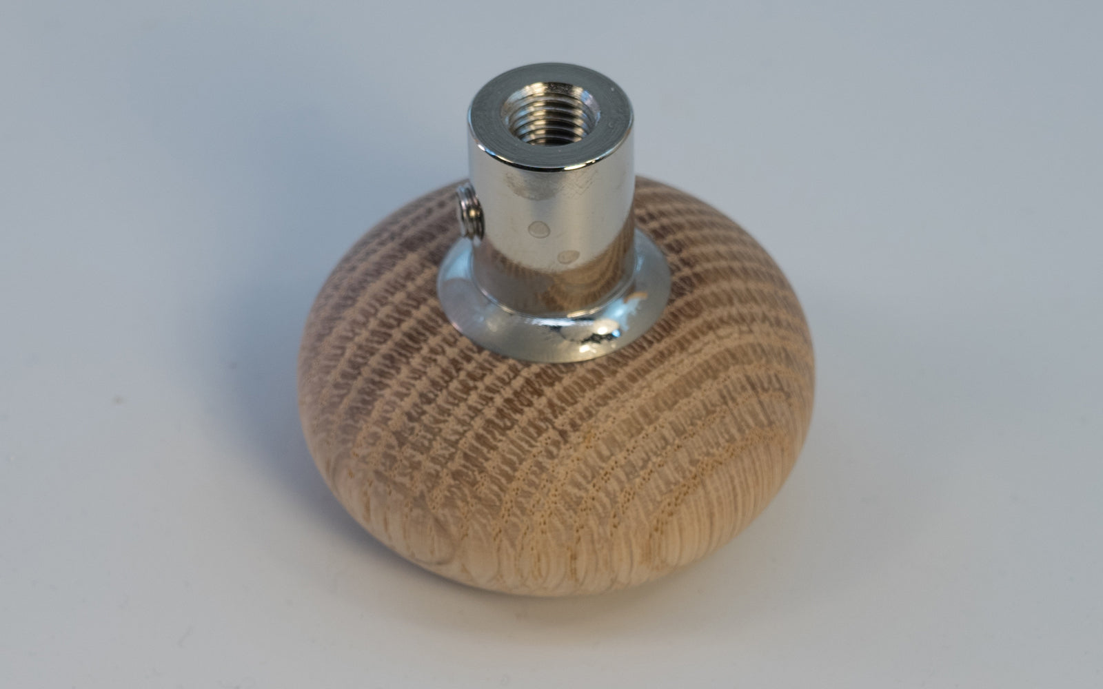 - Single Oak Doorknob with Solid Brass Nickel Base - USED - Some light discoloring on nickel ferrule base & light Scratches on doorknob