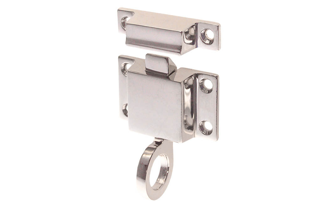A durable & handsome solid brass transom latch & box strike. This latch has an old time attractive square style, but it will easily fit in with any time period from Victorian, to current modern styles. The latch is spring loaded & is normally installed at the top of transom windows, but it may also be used on loft doors as well. Once installed, the latch is usually operated by a pole; ideally with a transom hook attached to the pole. This most handy & attractive latch will definitely help you out when you need to open a hard-to-reach small door or window!Hardwick & Sons is pleased to offer vintage-style hardware for the many people who desire to fashion their homes with charm, quality, & style. The traditional-style hardware that we showcase are true & faithful reproductions of classic hardware pieces found in the many homes from across America throughout the past century.