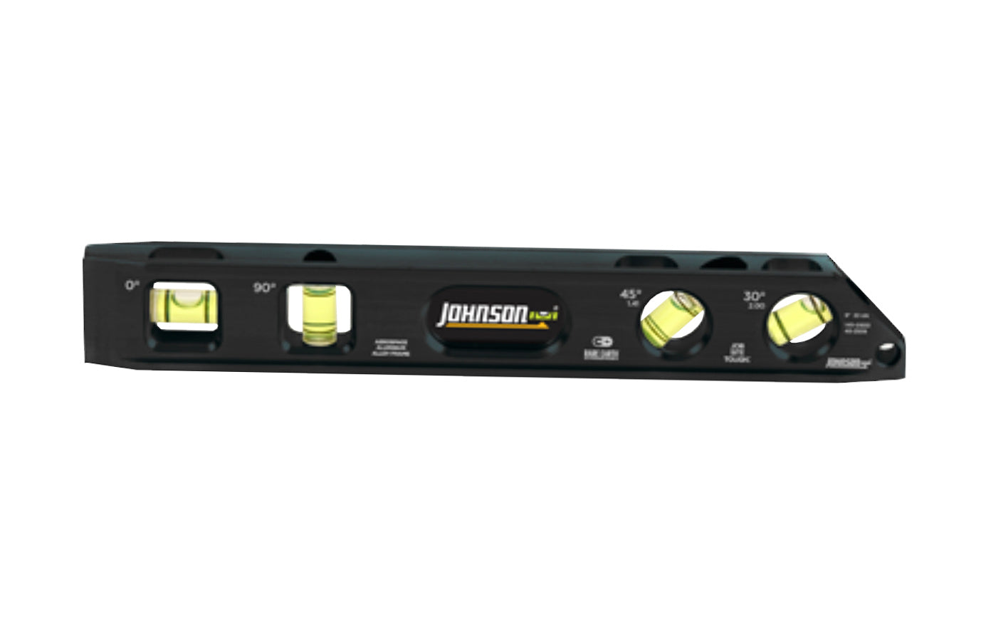 With four vials, this Johnson 9" magnetic billet torpedo level accurately measures 0°, 30°, 45° & 90°. It features a solid billet aluminum frame for durability while its Powerful "GripTight" V-groove rare earth magnets hold to flat or round ferrous metal surfaces for convenient hands-free use. This level also includes machined vial openings for an accurate reading every time. -