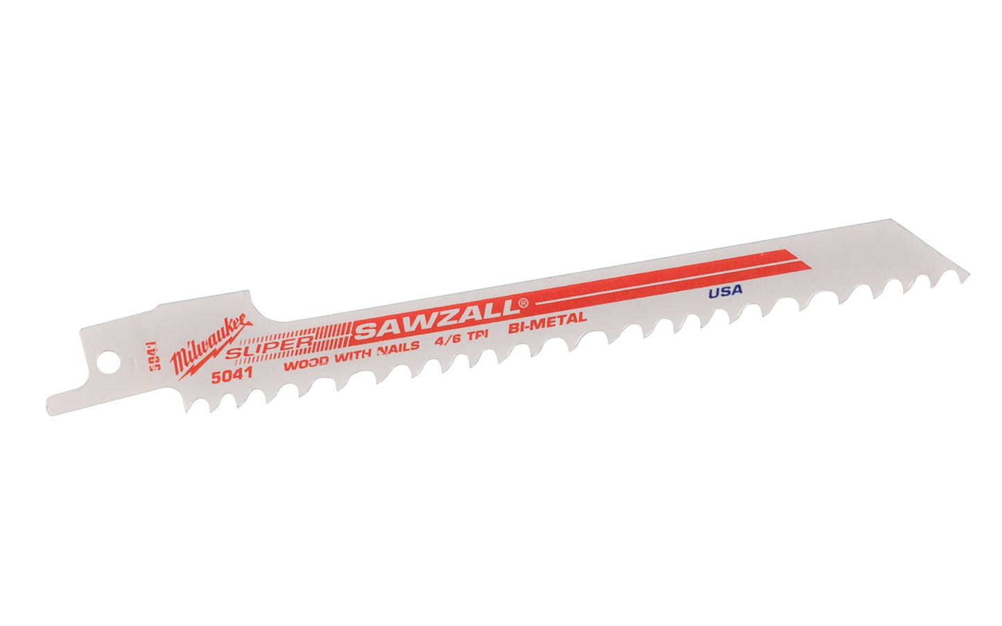 • Milwaukee 6" Reciprocating Saw Bi-Metal Blade - 4/6T - 3041 SINGLE. 6" overall length. 4/6 TPI. Sold as a single recip Super Sawzall blade.  Made in USA.