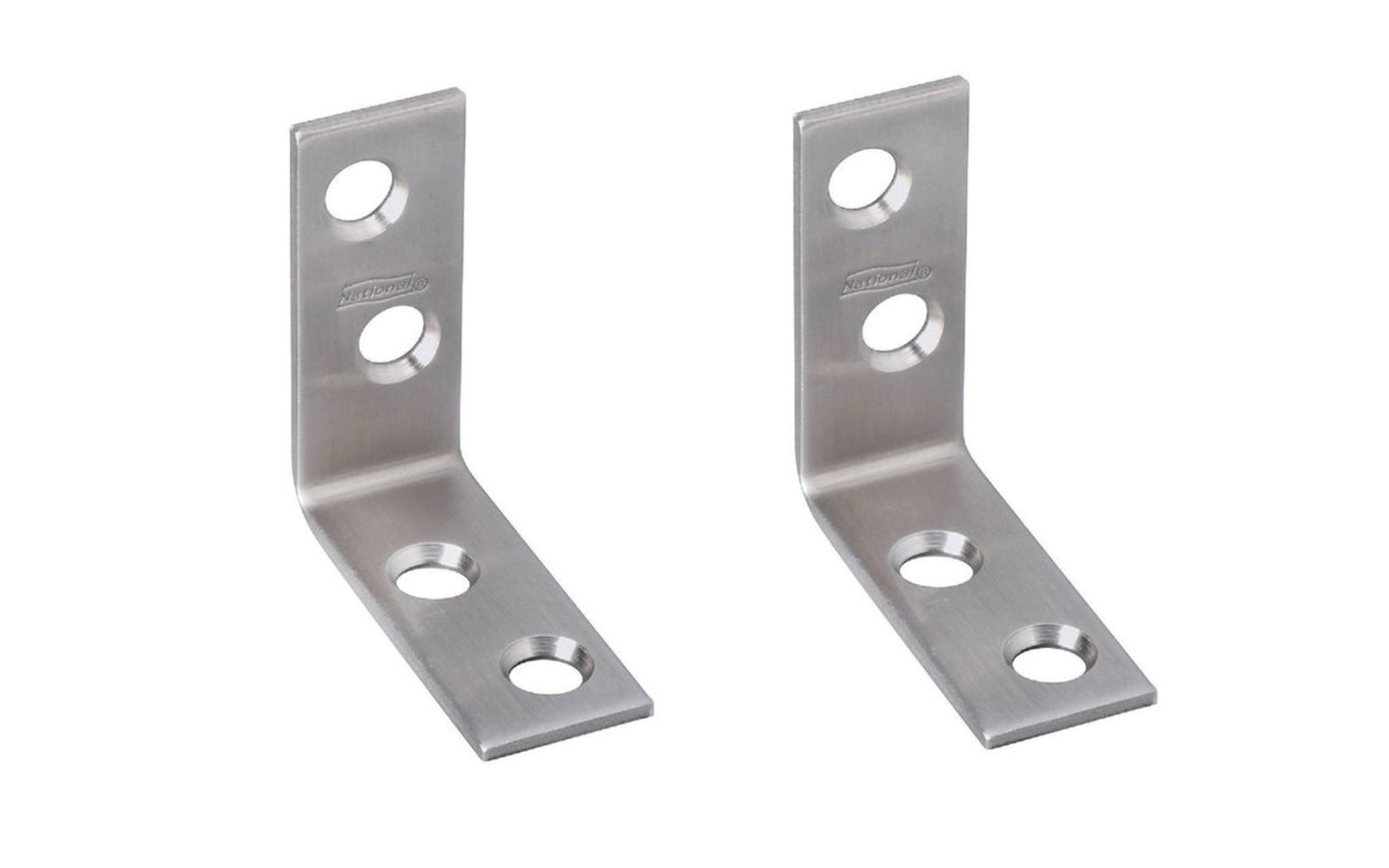 These stainless corner braces are designed for furniture, countertops, shelving support, chests, cabinets, etc. Allows for quick & easy repair of items & other home, workshop, & industrial applications. Made of stainless steel material for maximum protection from corrosion. Sold as a pair of corner irons. Includes fasteners. 2 Pack. National Hardware Model No. N348-300. -