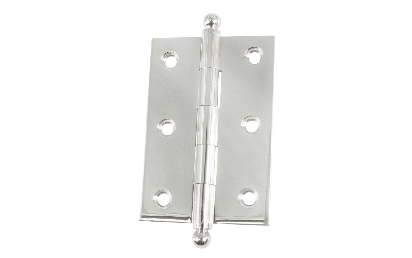 A high quality & classic solid brass cabinet hinge with ball tips. They are extruded, high precision machined hinges with a fixed pin for a sturdy operation. Made of high quality solid brass material, these high strength thick cabinet hinges will hold heavier cabinets well. The ball-tip finial hinges are designed in the early 20th century style / Arts and Crafts style of hardware, but will fit in with any time period up to the current modern styles. A very handsome & classic piece of hardware, great for cabinets & furniture. Available in unlacquered brass (non-lacquered brass will patina over time), antique brass, lacquered brass, oil rubbed bronze, brushed nickel, polished nickel, polished copper, & brushed chrome finishes. Sold as one hinge each.Hardwick & Sons is pleased to offer vintage-style hardware for the many people who desire to fashion their homes with charm, quality, & style. The traditional-style hardware that we showcase are true & faithful reproductions of classic hardware pieces found in the many homes from across America throughout the past century.
