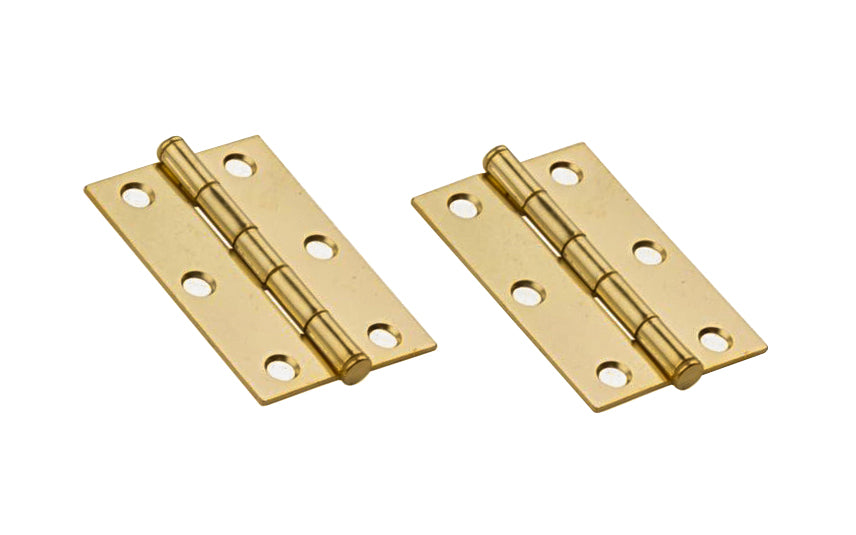 2-1/2" Brass-Plated Loose-Pin Hinges - 2 Pack. 2-1/2" high x 1-11/16" wide. Made of cold-rolled steel with brass plating. This loose-pin, button-tip cabinet hinge is designed for hanging lightweight cabinet doors. Pin allows cabinet doors to be removed without taking off hinge. Hinge includes nib for a finished appearance. Removable pin hinges. Sold as a pair of hinges. National Hardware Model No. N146-753. -