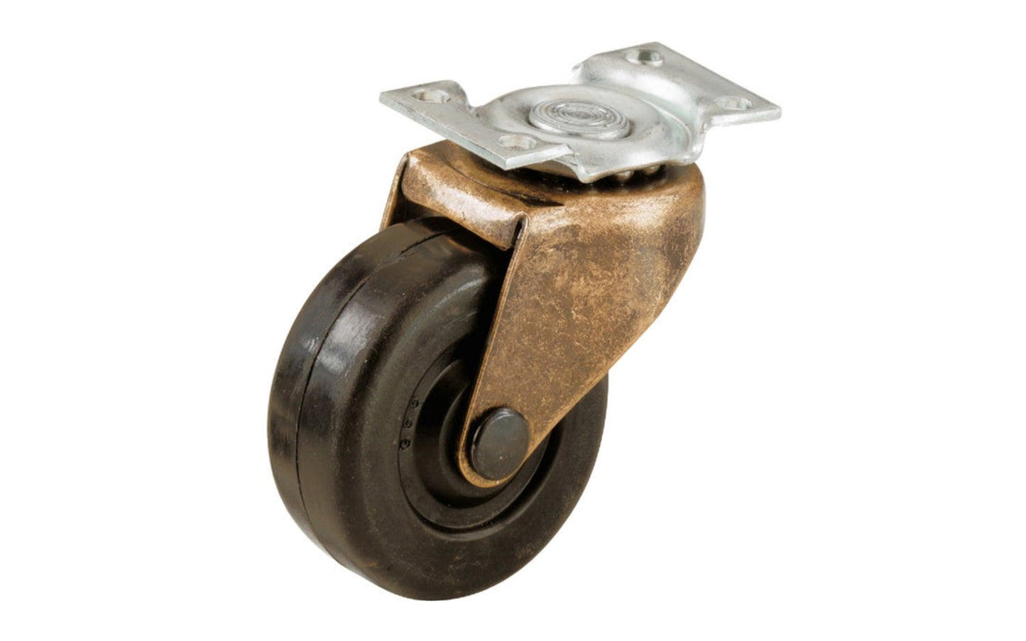 2" "Antiqued" Plate Ball Bearing Casters - 2 Pack. 2" (50mm) medium-duty soft rubber wheels, plate caster. Standard in use for wood base office furniture. Double ball bearing construction allows for instant swiveling. Black soft rubber wheel promotes smooth, silent operation on hard floors. Used under carts, home furniture, etc. Plate size is 1-1/4" x 2-1/8". Fasteners not included. Shepherd Hardware. -