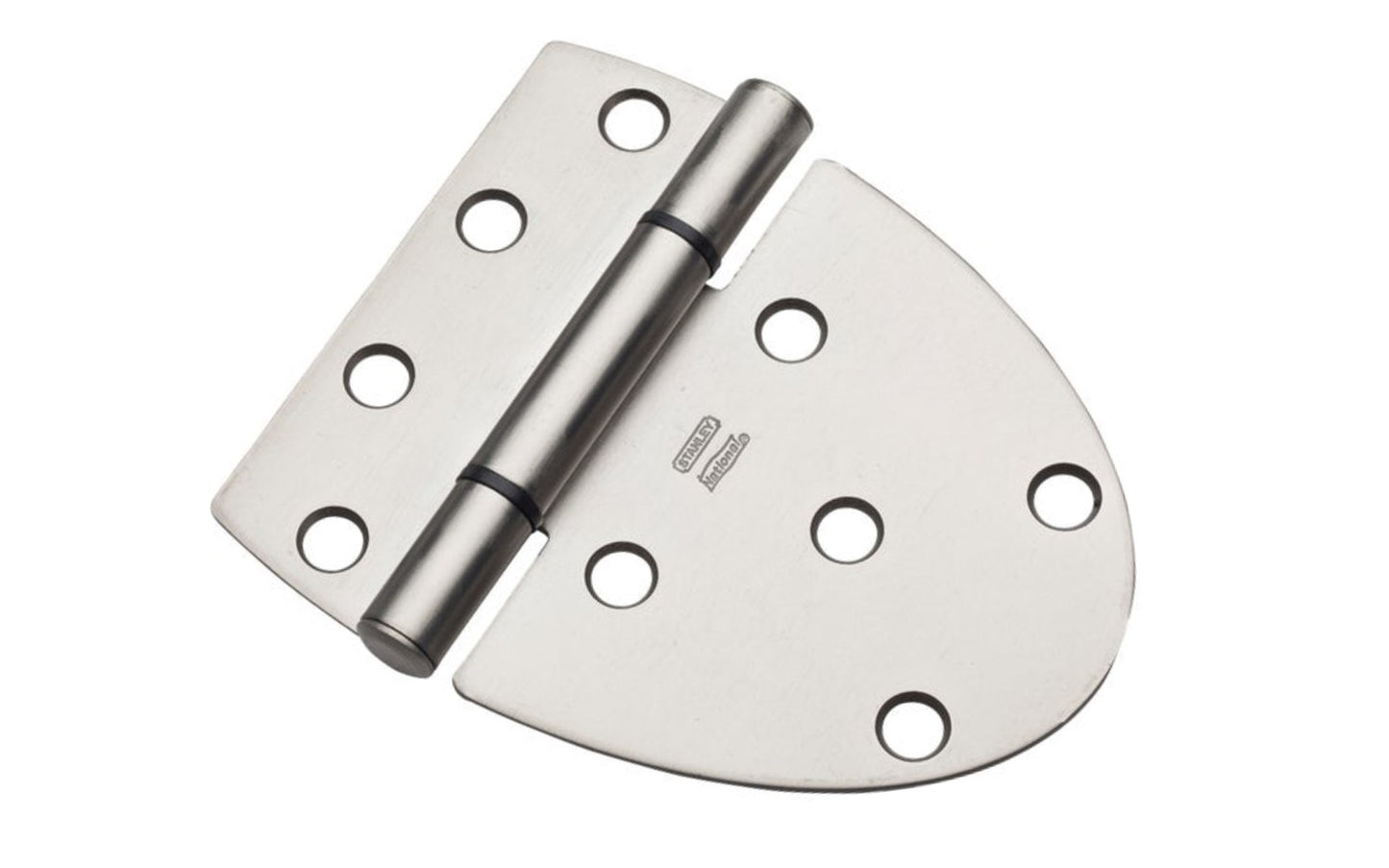 3-5/8" Satin Nickel Heavy Duty Gate Hinge. For gates, sheds, & barn doors. WeatherGuard for maximum protection from the outdoor elements. Safe working load 48 lbs. National Catalog Model V4870. -