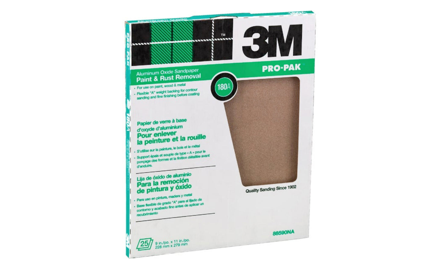 3M Aluminum Oxide Sandpaper 180 Grit - 25 Sheets. All-purpose aluminum oxide abrasive for home & shop use. Open coated sheets for paint, wood, and metal sanding. Made in Canada. -