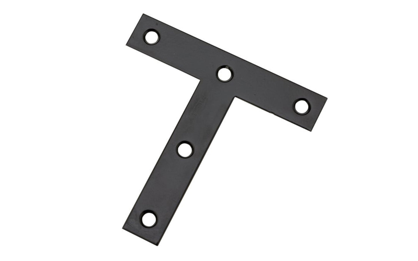 These T plates are designed for furniture, countertops, shelving support, chests, cabinets, etc. Allows for quick & easy repair of items & other home, workshop, & industrial applications. Made of steel material with a black finish. Sold as a single T-plate. Screws not included. National Hardware Model No. N266-470. -