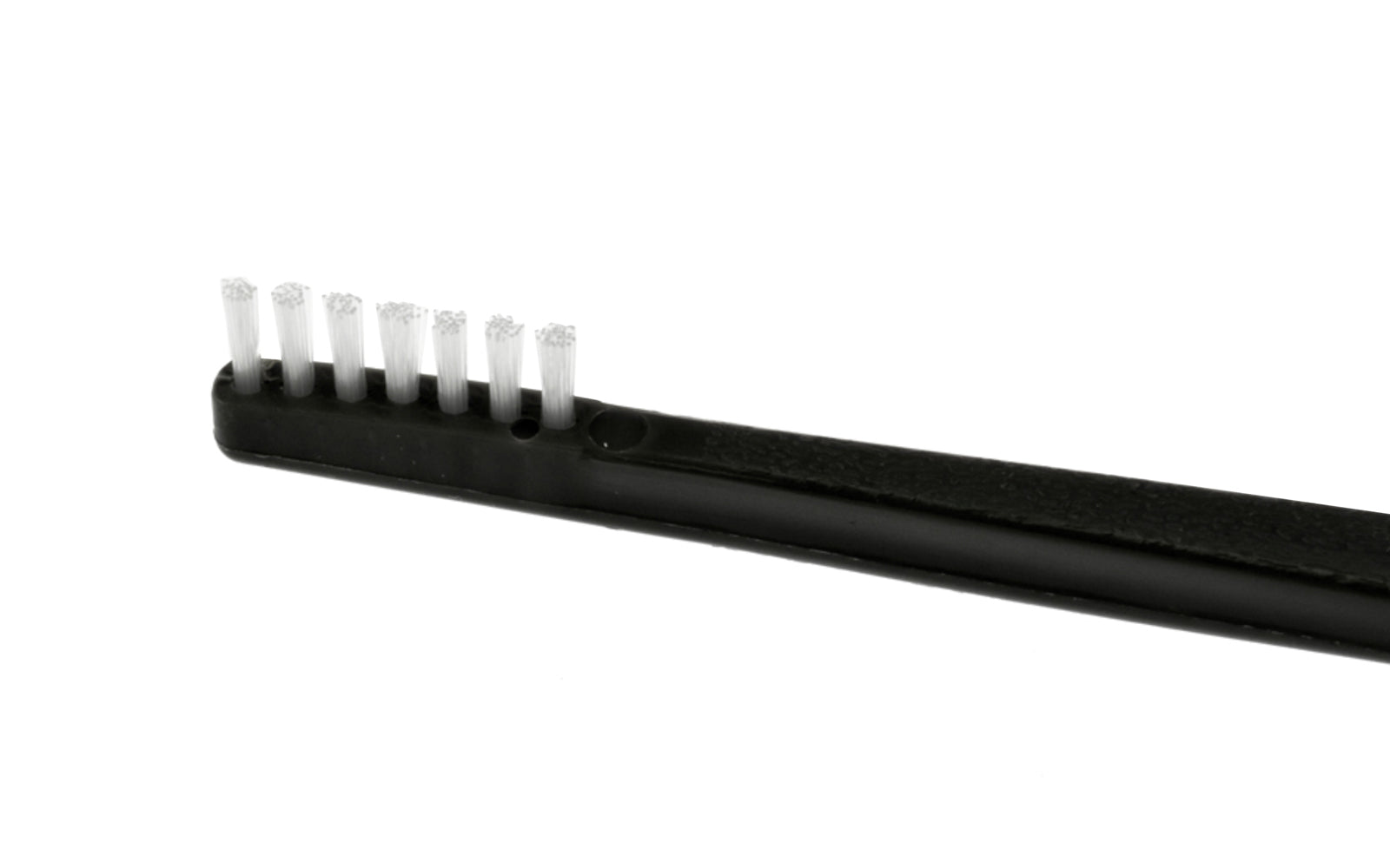 7" Nylon Bristle Double-Ended Cleaning Brush. Nylon bristles suitable for cleaning tools, automotive, hardware, delicate parts, finished surfaces, etc. Made by SE.