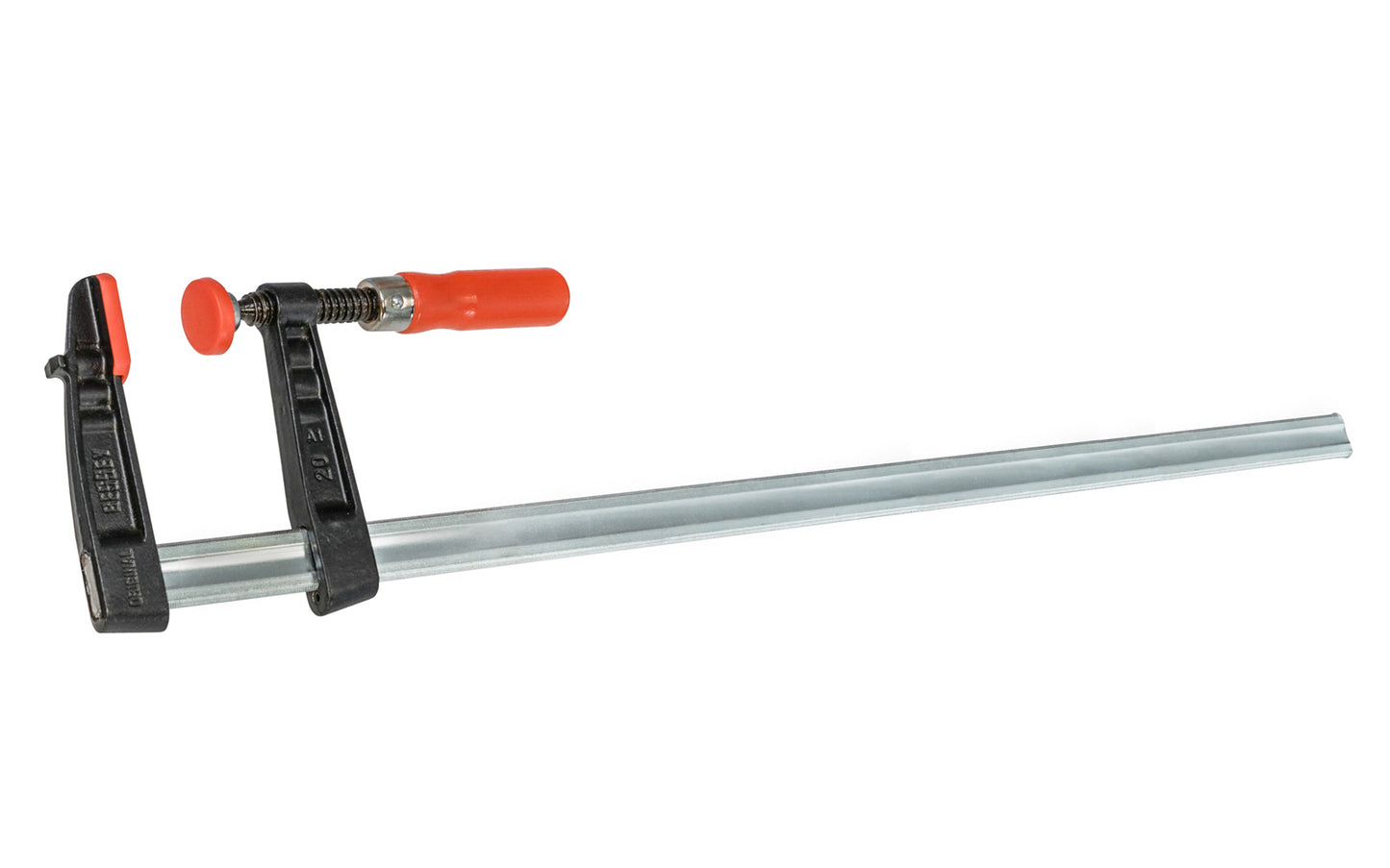 •  These Bessey Medium-Duty Steel Bar Clamps heads are made of tough malleable cast iron. The fixed jaw & sliding arm generates powerful & rigid clamping, & The rail’s hourglass profile contributes to these Bessey "TG series" clamps' ability to resist flex. The high quality profiled rail from Bessey's German steel plant has been optimized for these clamps. The profile acts against torsional forces. Includes tried-&-true wooden handles. Plastic pressure caps protect the work piece surface. 1000 lb. clamping force.   Made in Germany.