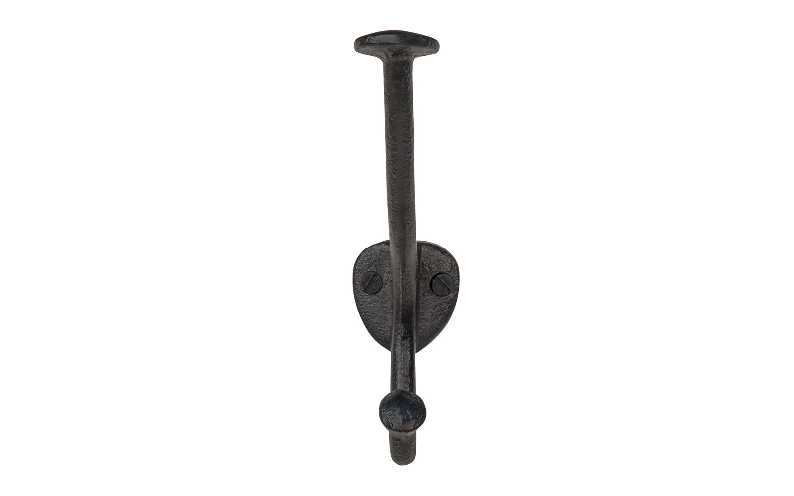 A vintage-style black cast-iron hall tree hook designed in the Art Nouveau style of hardware. Great for use in hallways, hall trees, coat racks, kitchens, bedrooms, & many other places. The hook is made of strong cast iron material, making it durable for heavy coats, bags, & clothing. It also has a double hook, making it good for hanging multiple items. The hook is designed in the Art Nouveau style of hardware, yet it has a timeless quality & will fit with current modern decors as well.Hardwick & Sons is pleased to offer vintage-style hardware for the many people who desire to fashion their homes with charm, quality, & style. The traditional-style hardware that we showcase are true & faithful reproductions of classic hardware pieces found in the many homes from across America throughout the past century.
