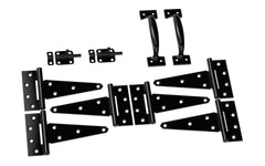 This black finish shed kit is used for replacing existing hardware on two shed doors. Black finish for style & durability. Mounting hardware included for easy installation. Kit includes (6) T-hinges, (2) Barrel Bolts, (2) Pulls & (1) Swivel Staple Safety Hasp. For exterior applications. Coated with "WeatherGuard" Protection to withstand harsh weather conditions & prevent corrosion. National Hardware Catalog Model No. N166-006. -