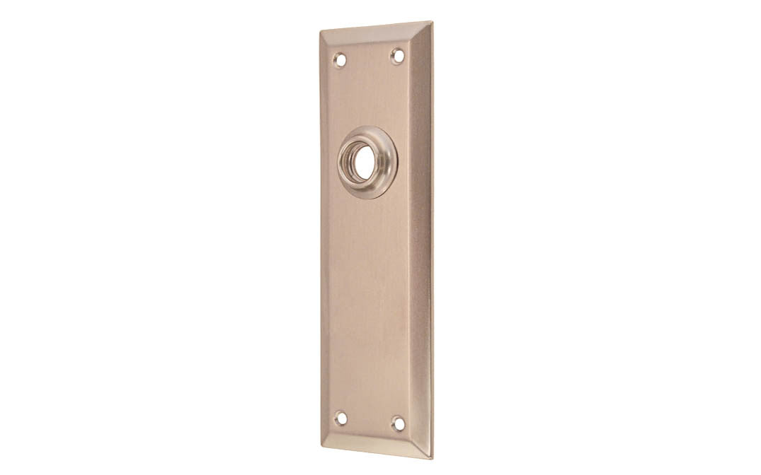 A classic & handsome door escutcheon plate. Made of quality stamped brass material, this escutcheon plate is a well-made & durable piece of hardware. The plate may be used on modern doors with 2-1/8" pre-bored holes, or with the old-style mortise lock sets on traditional doors as well. Beautify & grace your doors & doorknobs with these most elegant plates!Hardwick & Sons is pleased to offer vintage-style hardware for the many people who desire to fashion their homes with charm, quality, & style. The traditional-style hardware that we showcase are true & faithful reproductions of classic hardware pieces found in the many homes from across America throughout the past century.