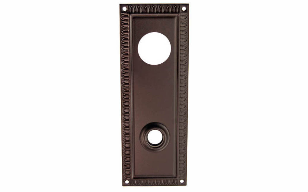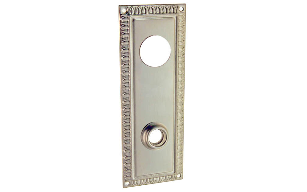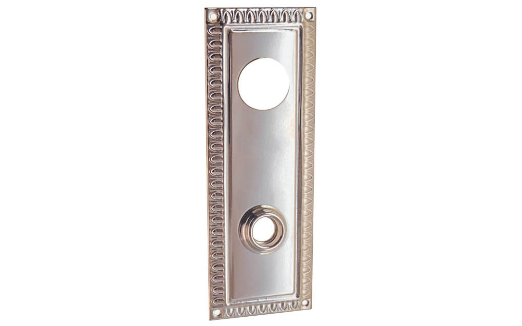 A classic & handsome door escutcheon plate with a hole for a cylinder keyway. This particular plate is designed for the cylinder that will enable you to lock your doors with your old-style mortise locks. Made of quality stamped brass material, this escutcheon plate is a well-made & durable piece of hardware. The plate may be used on modern doors with 2-1/8" pre-bored holes, or with the old-style mortise lock sets on traditional doors as well. Beautify & grace your doors & doorknobs with these most elegant plates!Hardwick & Sons is pleased to offer vintage-style hardware for the many people who desire to fashion their homes with charm, quality, & style. The traditional-style hardware that we showcase are true & faithful reproductions of classic hardware pieces found in the many homes from across America throughout the past century.