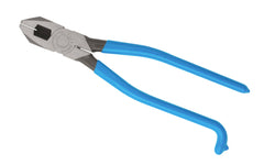• Channellock Ironworkers Linemen's Pliers make light work of twisting wire by adding more leverage with a dog leg handle design and heavy duty coiled spring. State-of-the-art laser heat-treating offers a strong and consistent pattern across the cutting edge, adding increased strength and longevity over traditional hardening practices. Crosshatch jaws provide maximum grip and durability. A precision-machined knife and anvil style cutting system ensures perfect mating. The diagonal cutters are made in USA and forged from high carbon U.S. steel that is specially coated for ultimate rust prevention. The Channelock 350S features blue vinyl comfort grips.   Made in USA.