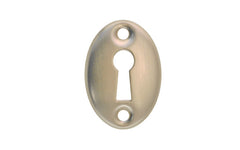 • A classic & attractive oval keyhole plate made of quality stamped brass material. This keyhole plate is a very traditional & common size, & will add a very nice touch to your cabinets, drawers, & furniture!
