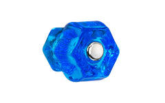 Classic Hexagonal Glass Knob ~ Peacock Blue - 1-1/4"