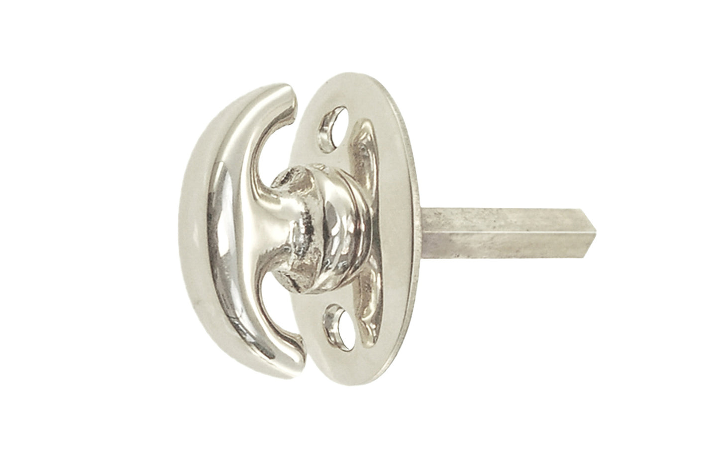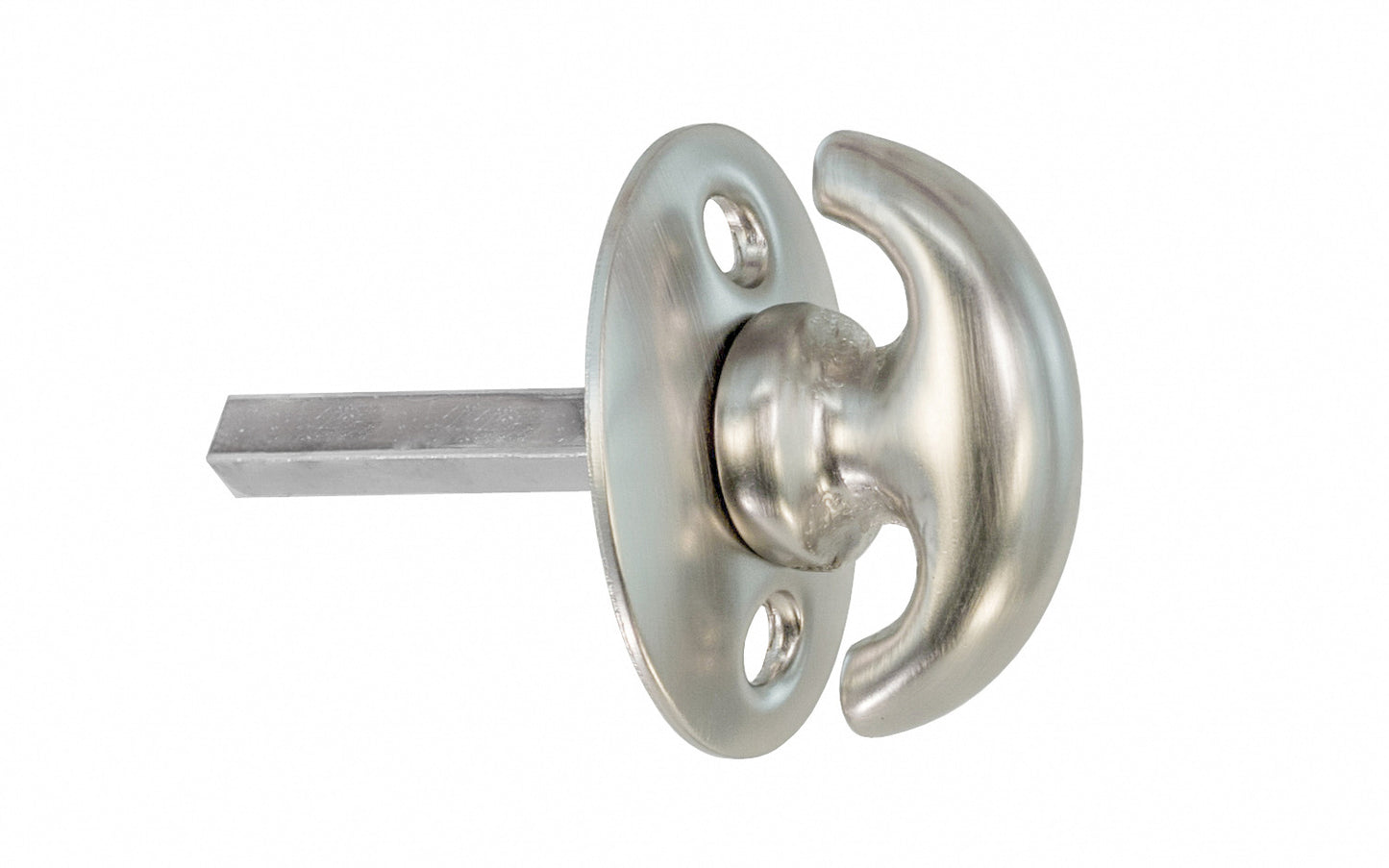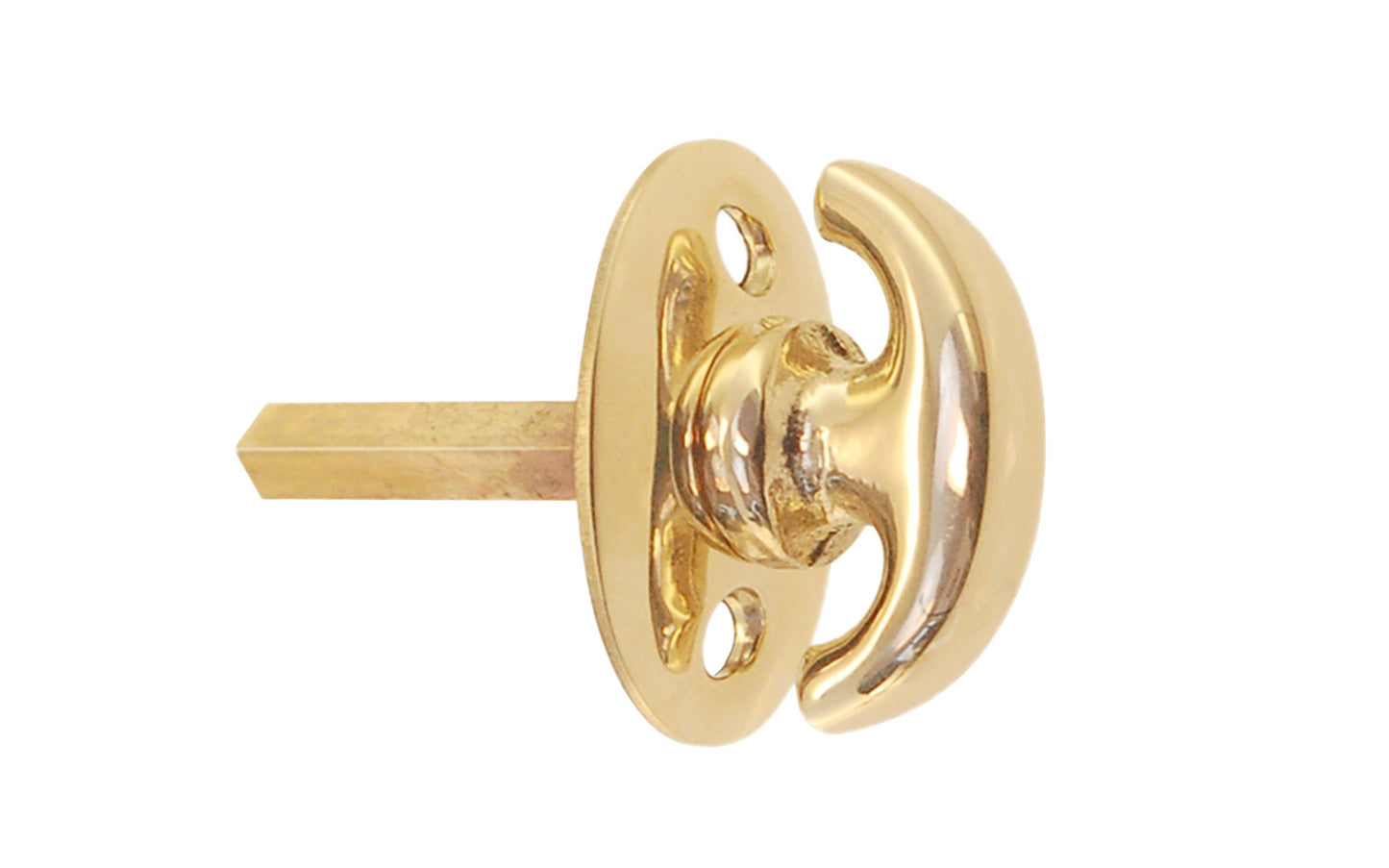 An old-style crescent thumbturn for locking doors with a smaller rosette plate. Commonly used with mortise locks, deadbolts, night-locks, catches & similar. The crescent turn & oval rosette plate are made of solid brass material, making it attractive & durable. 3/16" square shaft spindle size & 1-1/4" long (can be shortened if needed). Available in unlacquered brass (will patina naturally), lacquered brass, oil rubbed bronze, brushed nickel, & polished nickel finishes. *Note The shaft is attached to the thumb turn piece.Hardwick & Sons is pleased to offer vintage-style hardware for the many people who desire to fashion their homes with charm, quality, & style. The traditional-style hardware that we showcase are true & faithful reproductions of classic hardware pieces found in the many homes from across America throughout the past century.