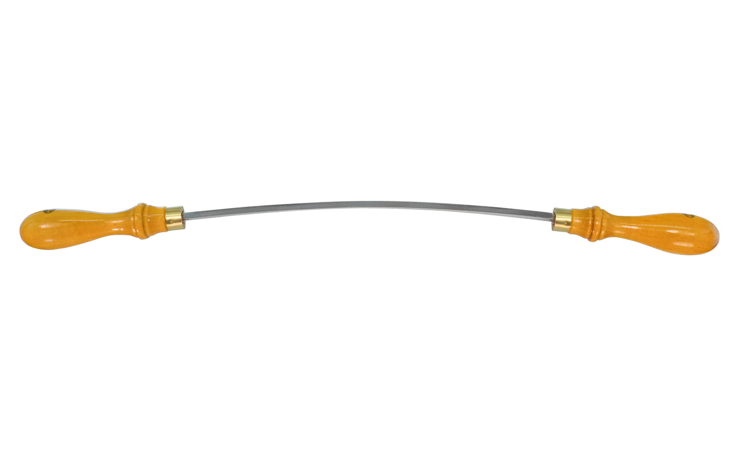 •  Traditional English pattern Draw Knives made by Crown Tools in Sheffield, England. This 11" curved drawknife is hand forged from high carbon steel then hardened & tempered, and cuts wood efficiently & holds a sharp edge well. The tangs extend down through handles. The draw knife is securely fitted with Beechwood handles.