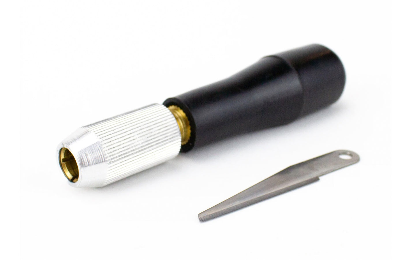 This K7 Carving Knife by Excel Blades is good for carving big chunks or detailed work. Two machined chuck slot for carving blades, & includes a replaceable super sharp carbon steel #101 blade. The ergonomic handle is designed to increase the comfort & ease with every use. Utility craft knife designed for use on paper, cardstock, stencils, film, photographs, tape, plastic, wood, cloth, leather, cardboard, cricut, cork, vinyl, foam boards & most other light-weight crafting. Fits Blades: #101, #102, #104, #105, #106 & #107. Made by Excel Blades. Made in USA.