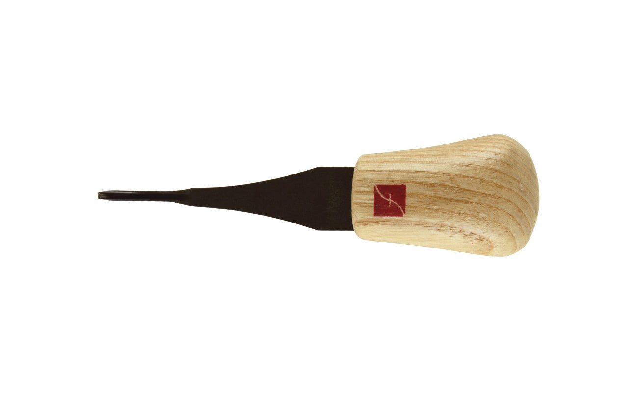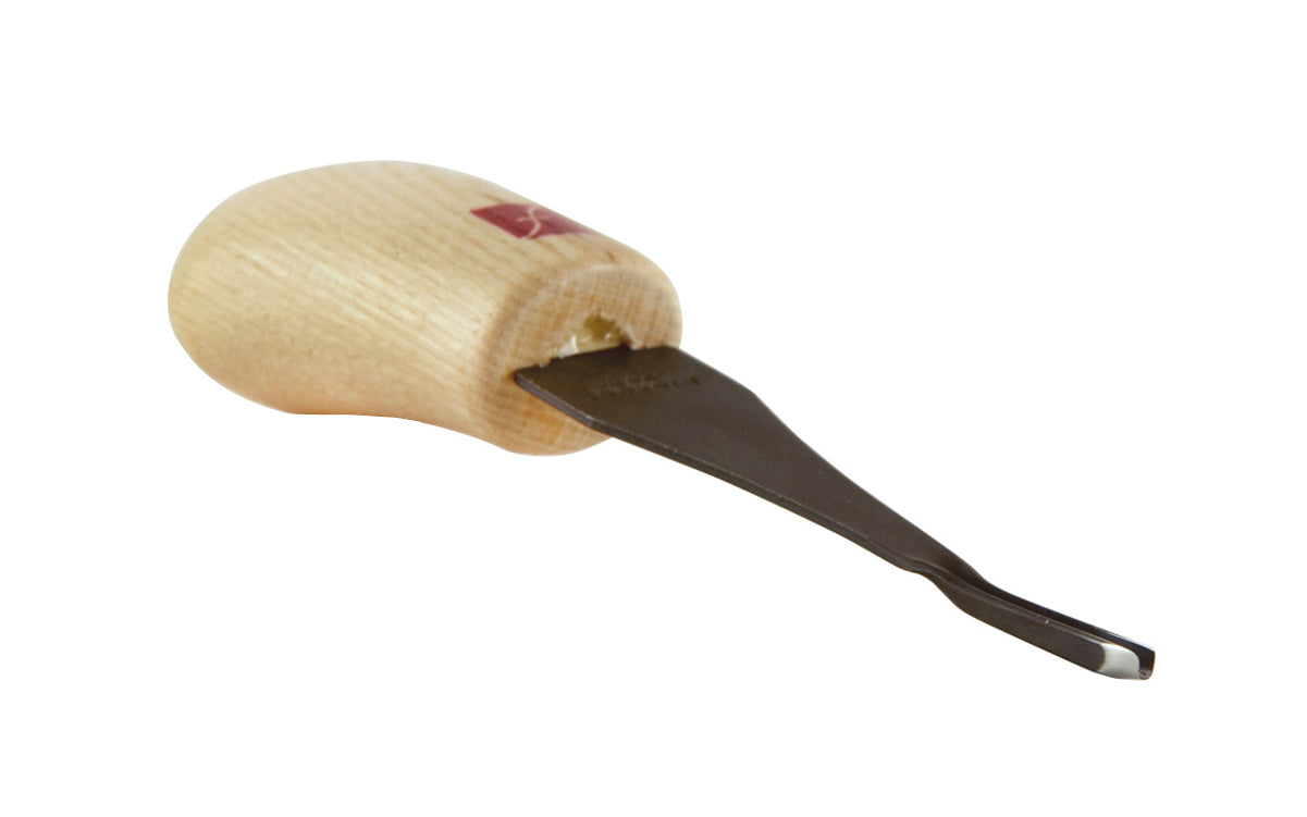This Palm Carving Tool is great for those who like to carve smaller sized projects. The handle fits comfortably in the palm, allowing for good control close to your work. The blade is made of High Carbon Steel. The cutting edge is hand honed & polished. No. 11 Sweep x 1/16" (2 mm) wide blade. Made in the USA. -