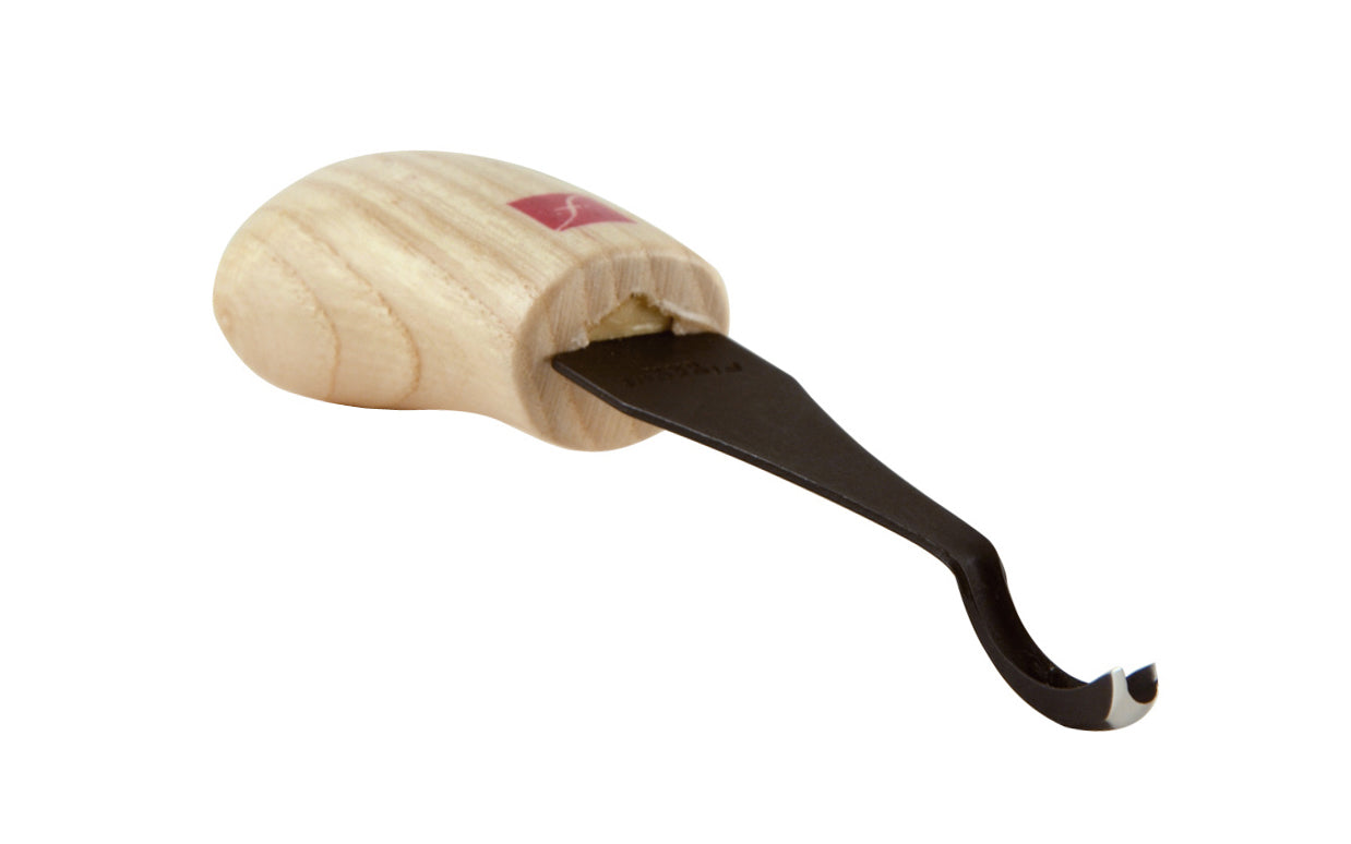 This Palm Carving Tool is great for those who like to carve smaller sized projects. The handle fits comfortably in the palm, allowing for good control close to your work. The blade is made of High Carbon Steel. The cutting edge is hand honed & polished. 1/8" (3 mm) wide blade. Made in the USA. -