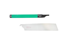 This Japanese Z-Saw is a special & excellent go-to-saw for general purpose woodworking. This particular "Air Puff Sawdust" model allows a puff of air to shoot out & clear the sawdust away from your line of vision on your board, so you can go on with your cut without picking up a brush to clear sawdust away. The saw has no metal spine back, which allows you to do all kinds of cuts, including miter cuts, deep cuts, quick cut-offs at 90°, or other unusual cuts. It is a good saw for general lumber, including soft & hard woods, & for plywood & laminate board too. The teeth are impulse hardened which makes the blade tough & durable for prolonged life & wear. The blade also can be removed when/if needed to be replaced. See replacement blade here. The handle has a soft cushion grip for a comfortable feel. Made in Japan.About Japanese Pull Saws