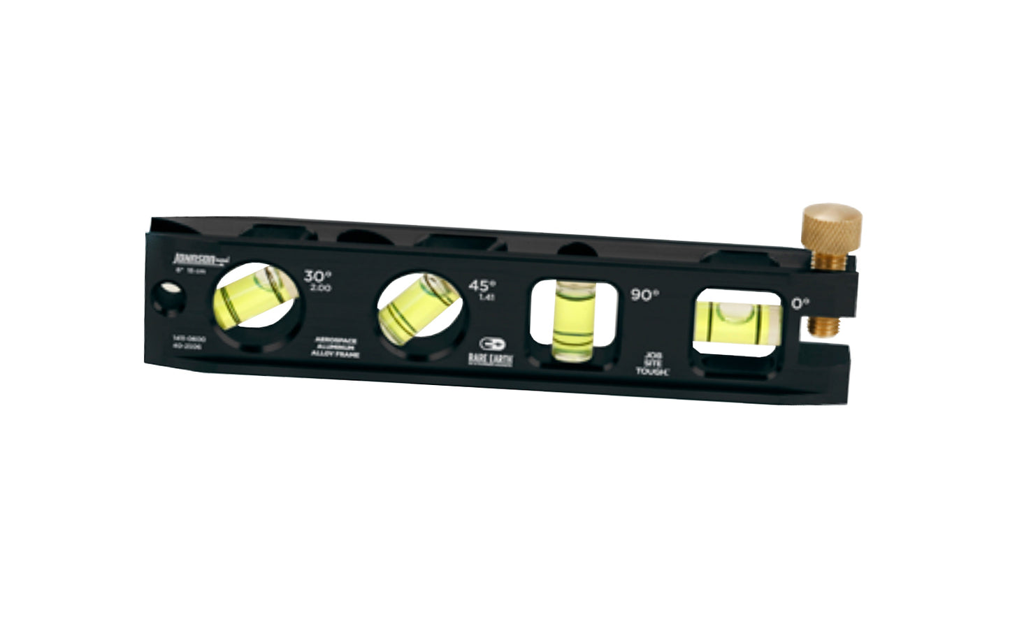 With four vials, this Johnson 6" magnetic billet torpedo level accurately measures 0°, 30°, 45° & 90°. It features a solid billet aluminum frame for durability while its Powerful "GripTight" V-groove rare earth magnets hold to flat or round ferrous metal surfaces for convenient hands-free use. This level also includes machined vial openings for an accurate reading every time. -