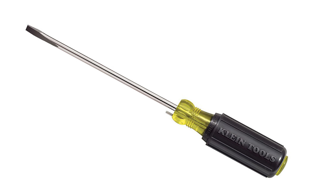 Klein's 1/4" Slotted Wire Bending Screwdriver with 6" Shank 605-6B features a metal stud that offers a convenient & easy way to bend, loop & connect solid wire when installing outlets & switches. Bends 10, 12 & 14 AWG wire. Made in USA. -