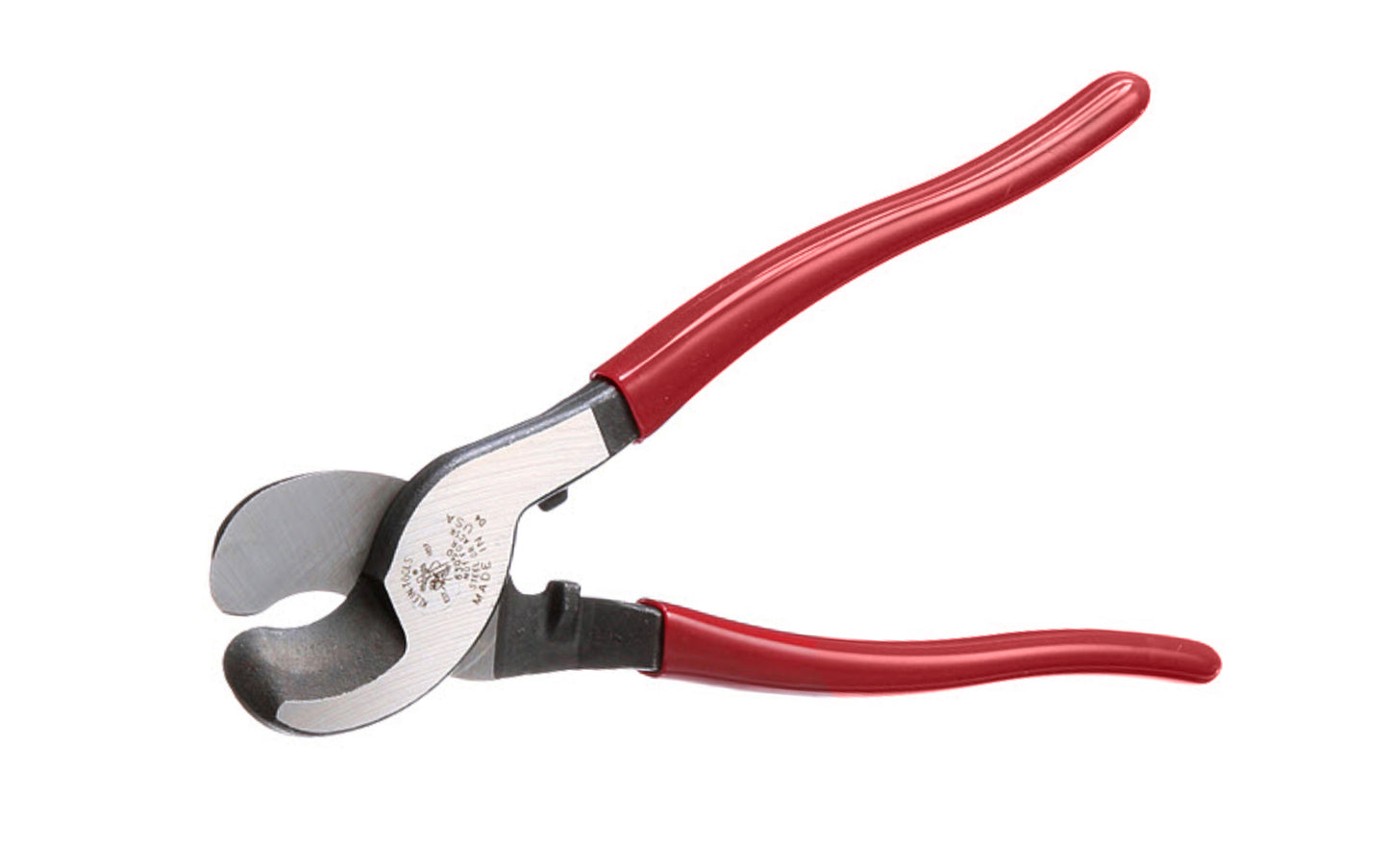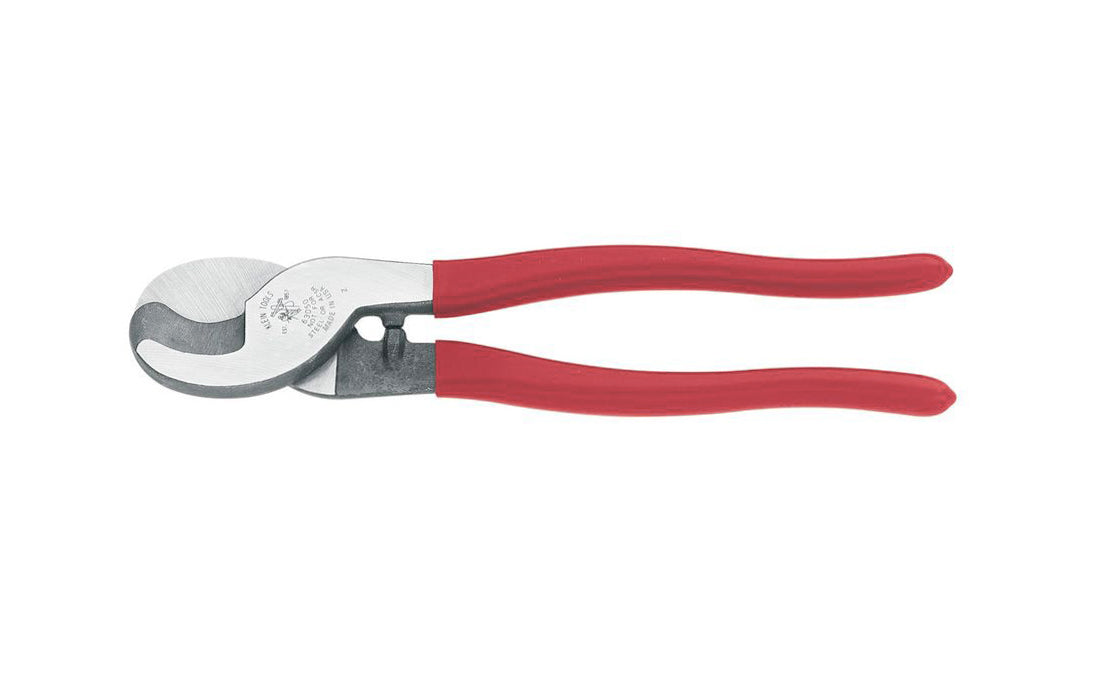 These Klein Tools high-leverage cable cutter cuts aluminum, copper & communications cable. Cable-gripping shear-type jaws provide exceptional cutting capability. Through-hardened, not case-hardened, cutting surfaces are longer-lasting. Made in USA. -