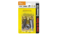 7/16" Brass Grommet Kit, complete with tool & brass grommets for replacement or repairs in canvas or plastic. Instructions included. Tools with kit: Cutting block, hole cutter, inserting punch & die. Great for vinyl & canvas, tents, sails, covers for boats, trailers, pools, flags & banners, etc. 7/16" inside diameter grommets. Made by Lord and Hodge, Inc. Made in USA. -
