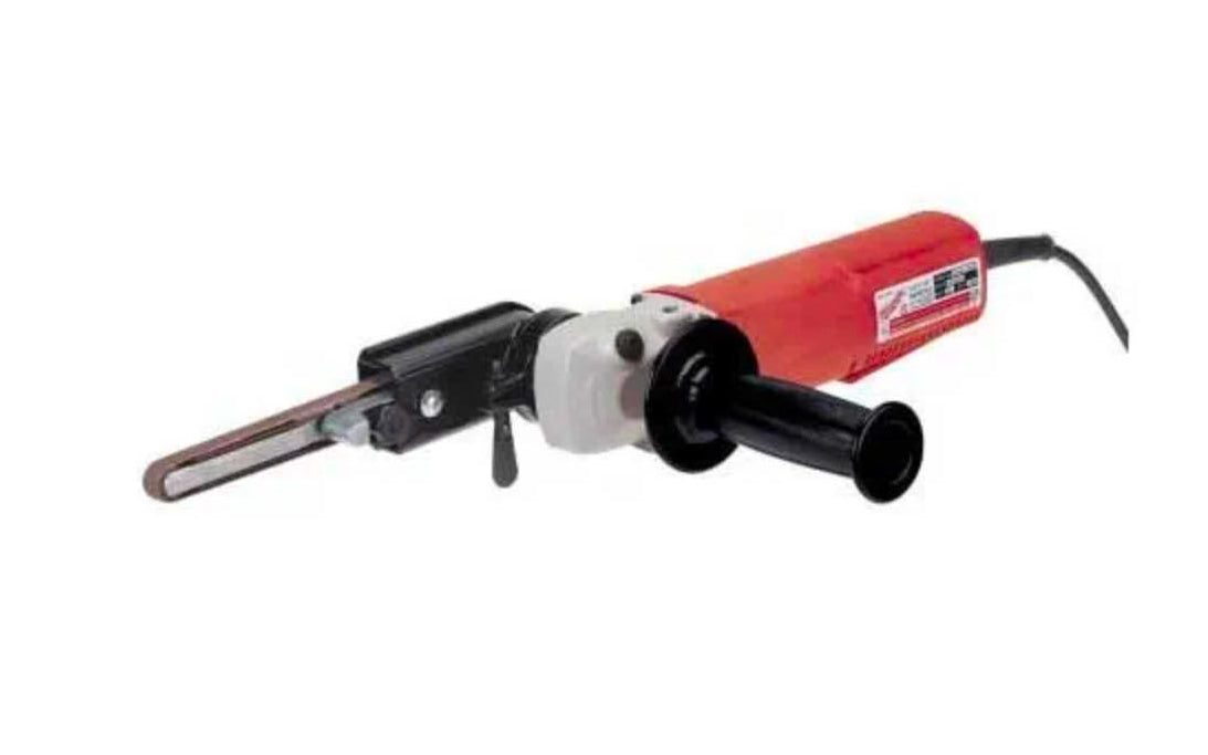 Grind, deburr, sand and surface finish metal pipe, angle iron, fiberglass and wood. Getting into awkward tight areas is best suited for the 1/2 inch by 18 inch arm of this Milwaukee Bandfile. The head of the file can be adjusted 180 degrees. This body grip tool offers a single hand on/off paddle switch and a three position side handle. Finishing curved surfaces? Milwaukee also offers an offset contact arm to make the job easy. Milwaukee also offers a full line of Bandfile Belts for extended wear under the toughest conditions. -