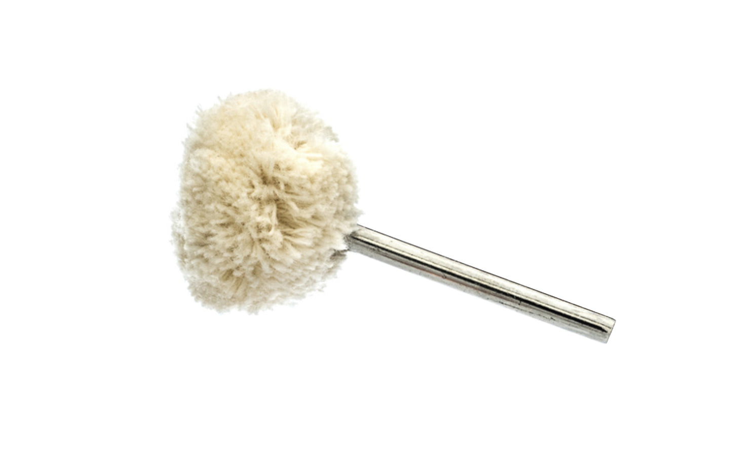 Mini White Yarn Polishing Wheel. 1" Diameter Wheel. 1/8" Shank. Made by Sona Enterprises.