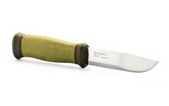 A great outdoor stainless steel knife with a profile-ground, multi-functional blade! The knife is made of high quality Swedish cold-rolled stainless steel hardened to Rc 57-58, with a nice polished finish. The fixed blade extends down through the handle for a durable & well made knife. The blade has a perfect balance between length & width, which gives it a better experience when using it. The handle has an excellent high friction patterned grip. A excellent knife for the outdoor & marine pursuits!