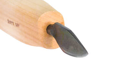 • A special carving knife with a razor-sharp edge. This knife is great for general carving, chip carving, whittling, & other specialty wood carving uses. The blade itself is 1-1/2" long & has a slight curve & bevel to it; a very special multi-purpose knife, & an excellent tool for wood carving. Made in the USA.