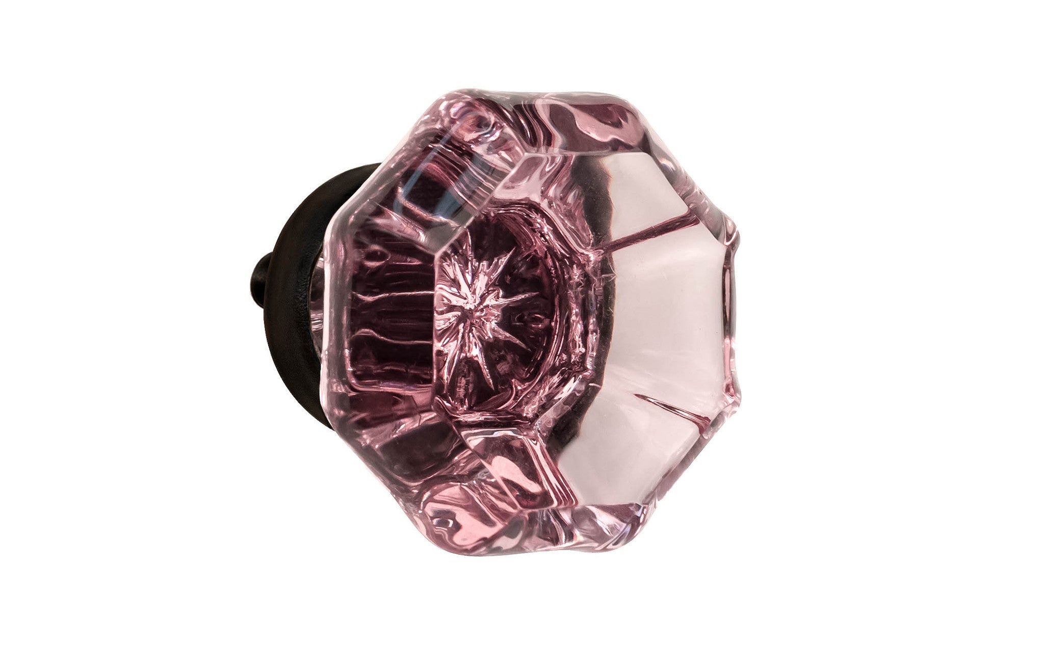 A very elegant & classic octagonal cabinet glass knob with an attractive vintage-style "Purple Amethyst" color. The glass is carefully set into a handsome solid brass base with a threaded shank in the back. It also comes with a 8-32 thread truss head screw which allows for mounting the knob from the back. The solid brass base has a oil rubbed bronze finish. This octagon shape cabinet knob is designed in the Late 19th Century / Early 20th Century style of hardware / Arts and Crafts style, but will match any period style up to current modern styles. A beautiful & elegant knob for cabinets & furniture. Available in 1" & 1-1/4" diameter size knobs.