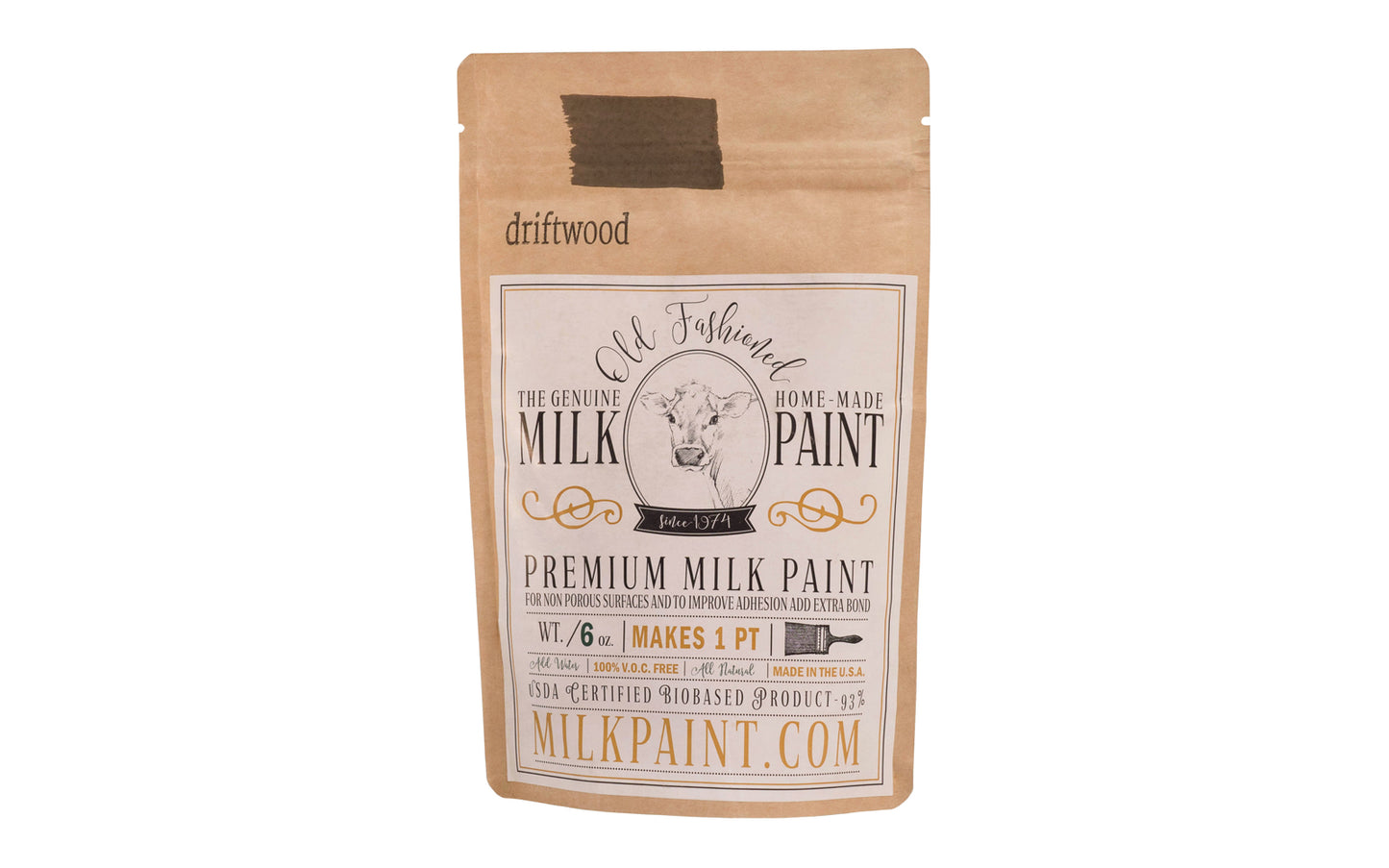 Product Net Weight Bag SKU # Item # Old Fashioned Milk Paint ~ Driftwood - 2 oz Bag (Covers 12 Sq. ft.) 2 oz MP-DRIFTWOOD 2 OZ 119S Old Fashioned Milk Paint ~ Driftwood - 6 oz Bag (Makes 1 Pint - Covers 36 Sq. ft.) 6 oz (Makes 1 PT) MP-DRIFTWOOD 6 OZ 1190