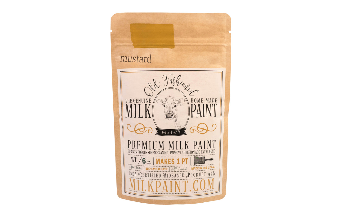 Product Net Weight Bag SKU # Item # Old Fashioned Milk Paint ~ Mustard - 2 oz Bag (Covers 12 Sq. ft.) 2 oz MP-MUSTARD 2 OZ 105S Old Fashioned Milk Paint ~ Mustard - 6 oz Bag (Makes 1 Pint - Covers 36 Sq. ft.) 6 oz (Makes 1 PT) MP-MUSTARD 6 OZ 1050