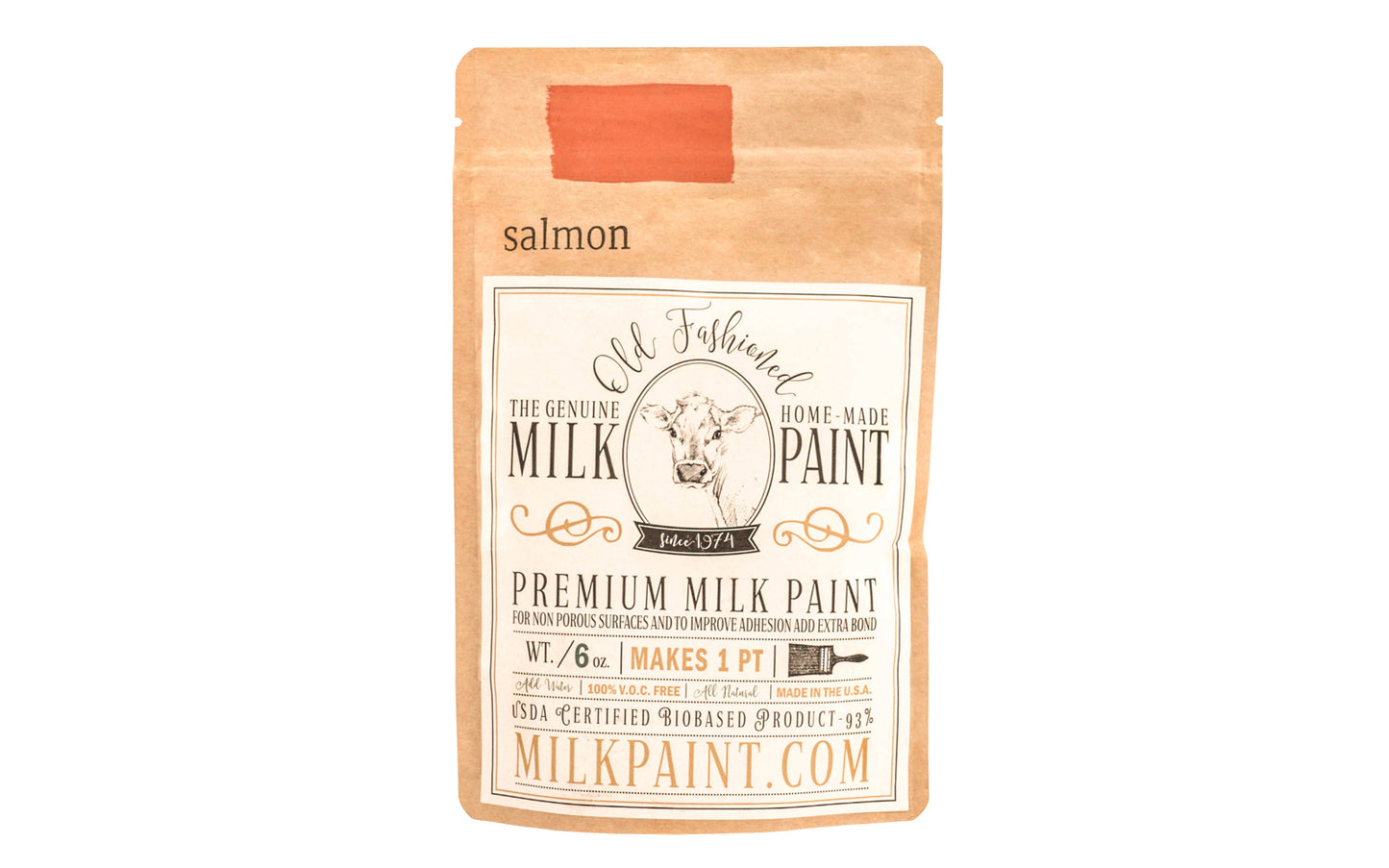 Product Net Weight Bag SKU # Item # Old Fashioned Milk Paint ~ Salmon - 2 oz Bag (Covers 12 Sq. ft.) 2 oz MP-SALMON 2 OZ 120S Old Fashioned Milk Paint ~ Salmon - 6 oz Bag (Makes 1 Pint - Covers 36 Sq. ft.) 6 oz (Makes 1 PT) MP-SALMON 6 OZ 1200