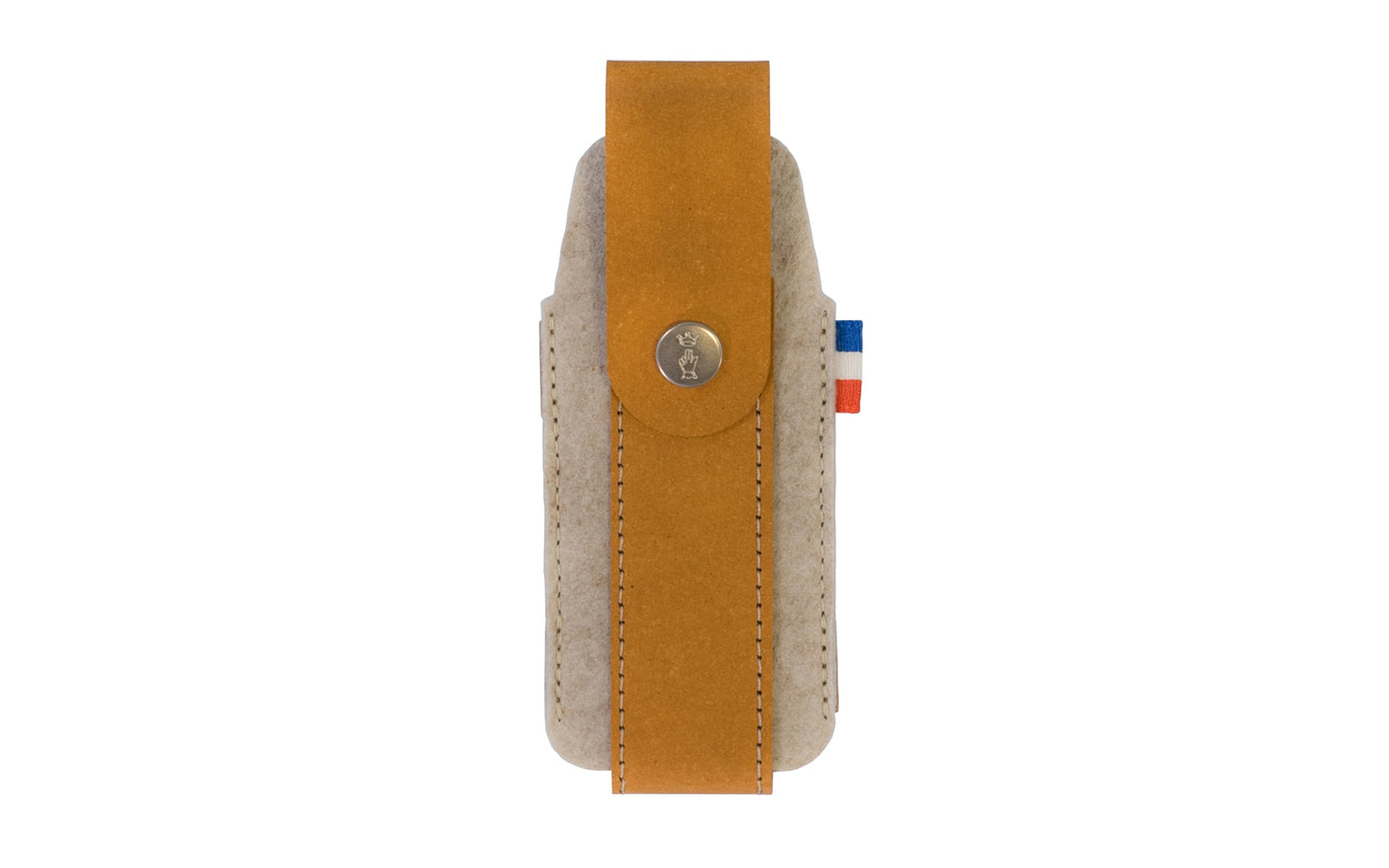 Opinel Medium Outdoor Sheath. Made of regenerated leather - an eco-conscious material created with waste leather fibers & plant-based materials. Snap enclosure that will keep your knife safely secured during transport. Made in France. -