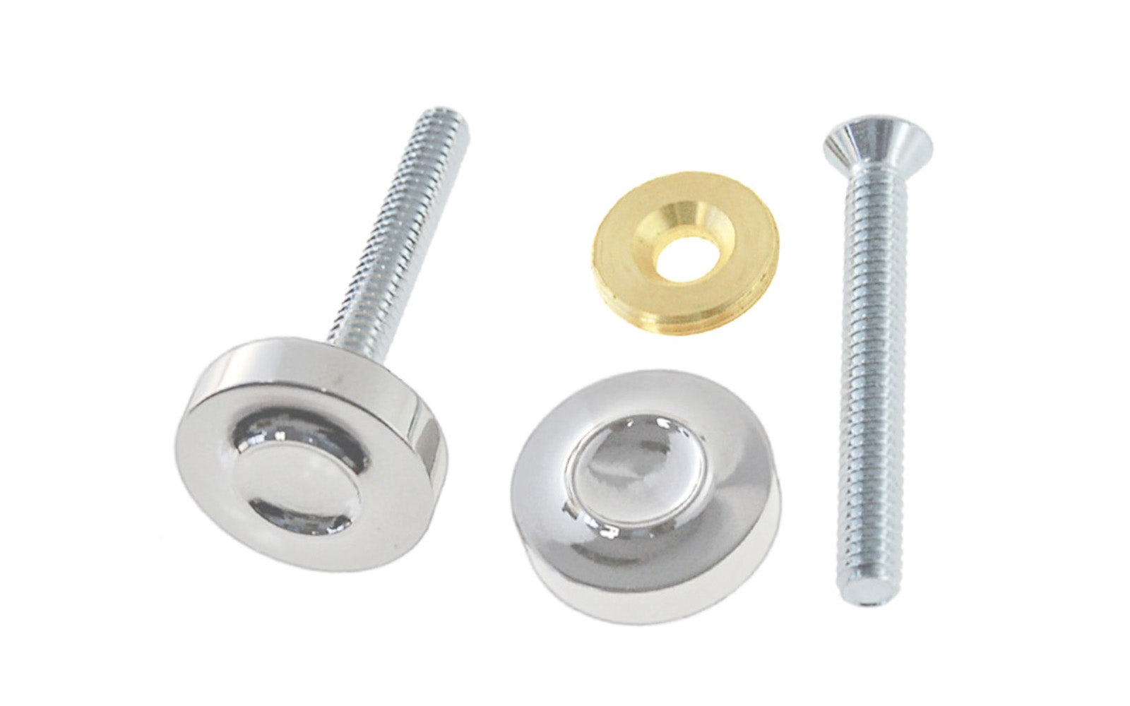 •  Solid brass decorative caps used to install door pull handles for exterior doors. Available in non-lacquered brass (the un-lacquered brass will patina over time), oil rubbed bronze, lacquered brass, brushed nickel, & polished nickel finishes.