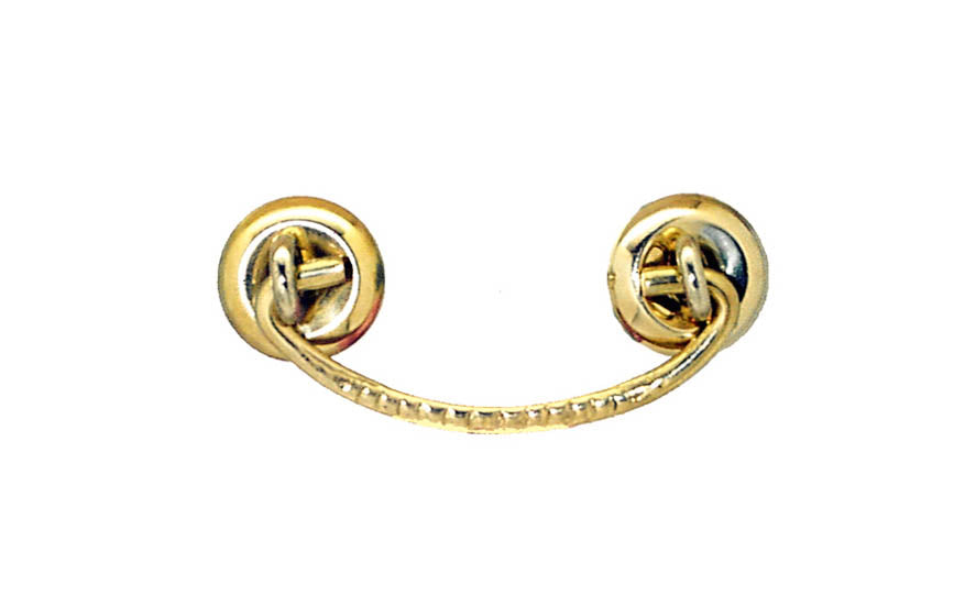 • A classic & good-looking bail drop pull that's excellent for dressers, drawers, cabinets, tables, desks, & even small boxes. Made of high quality solid brass, this drop pull is very durable & is designed in a traditional Victorian style, but suitable for many different period decors. Includes two attractive stamped brass rosettes & two 8-32 thread machine screw eye posts which allows for invisible rear mounting. A great option for sprucing up your furniture!