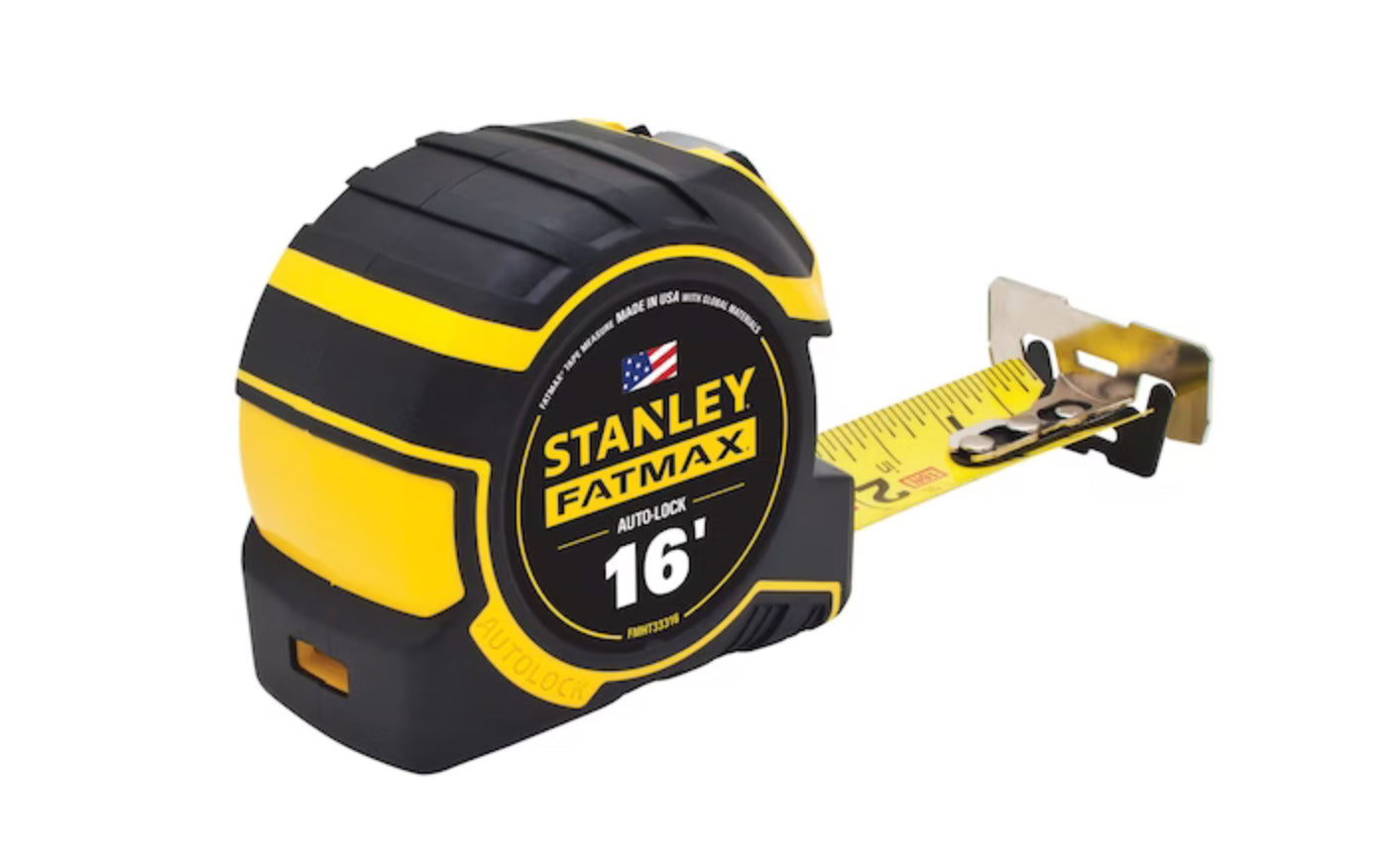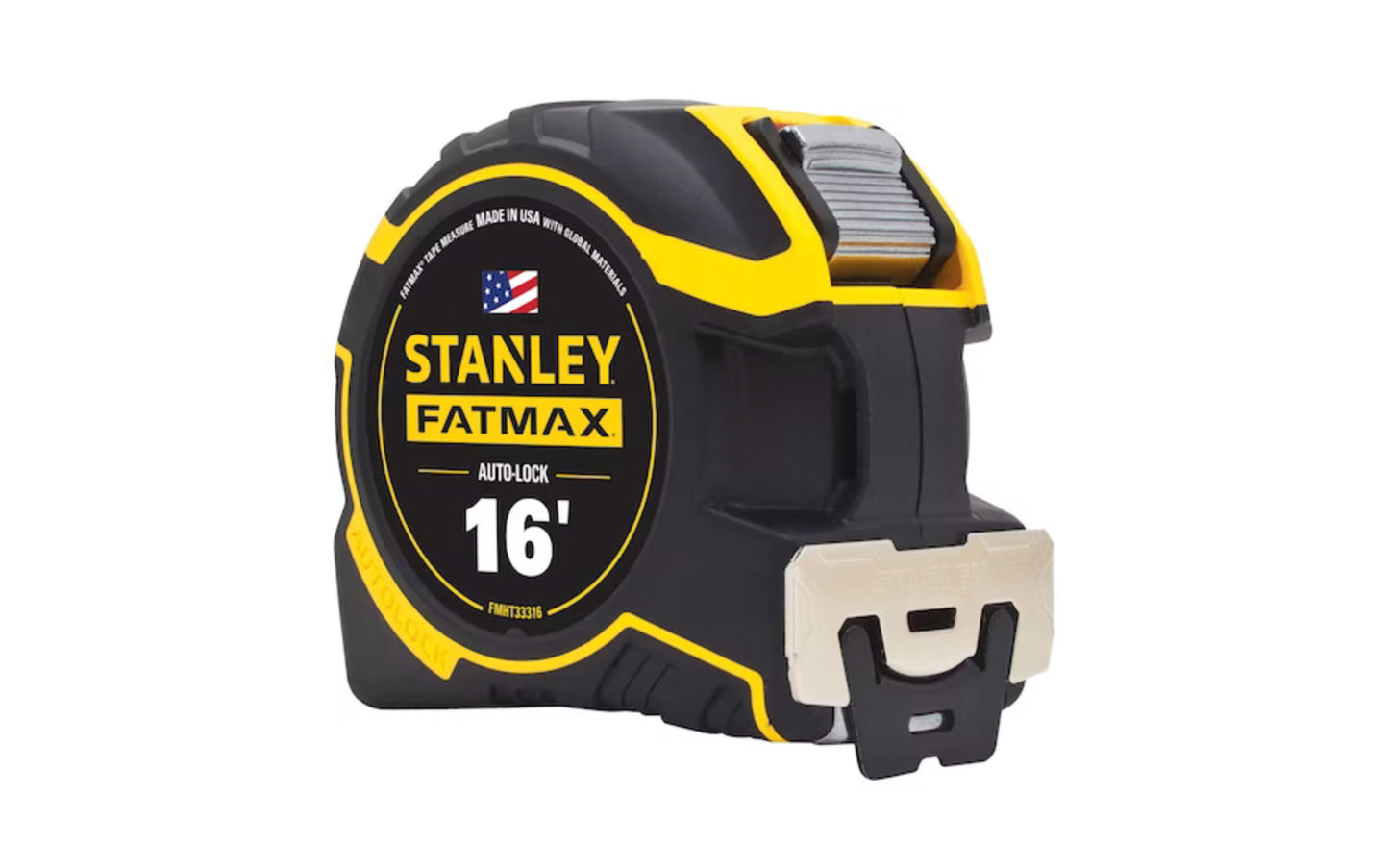 Stanley Fatmax 16' AutoLock Tape Measure. The auto-lock mechanism holds the blade secure until you are ready to release it, & a detachable framing hook is ready to grab studs when you need it. Made in USA. -
