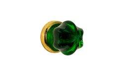 This turn-of-century reproduction glass knob has an exquisite & charming star-shaped design fitting for period cabinets & furniture. The glass is carefully set into a handsome brass base with a threaded shank in the back. It also comes with a 8-32 thread truss head screw which allows for mounting the knob from the back. Add some sophistication & flair to your cabinets with these beautiful & colorful pieces!