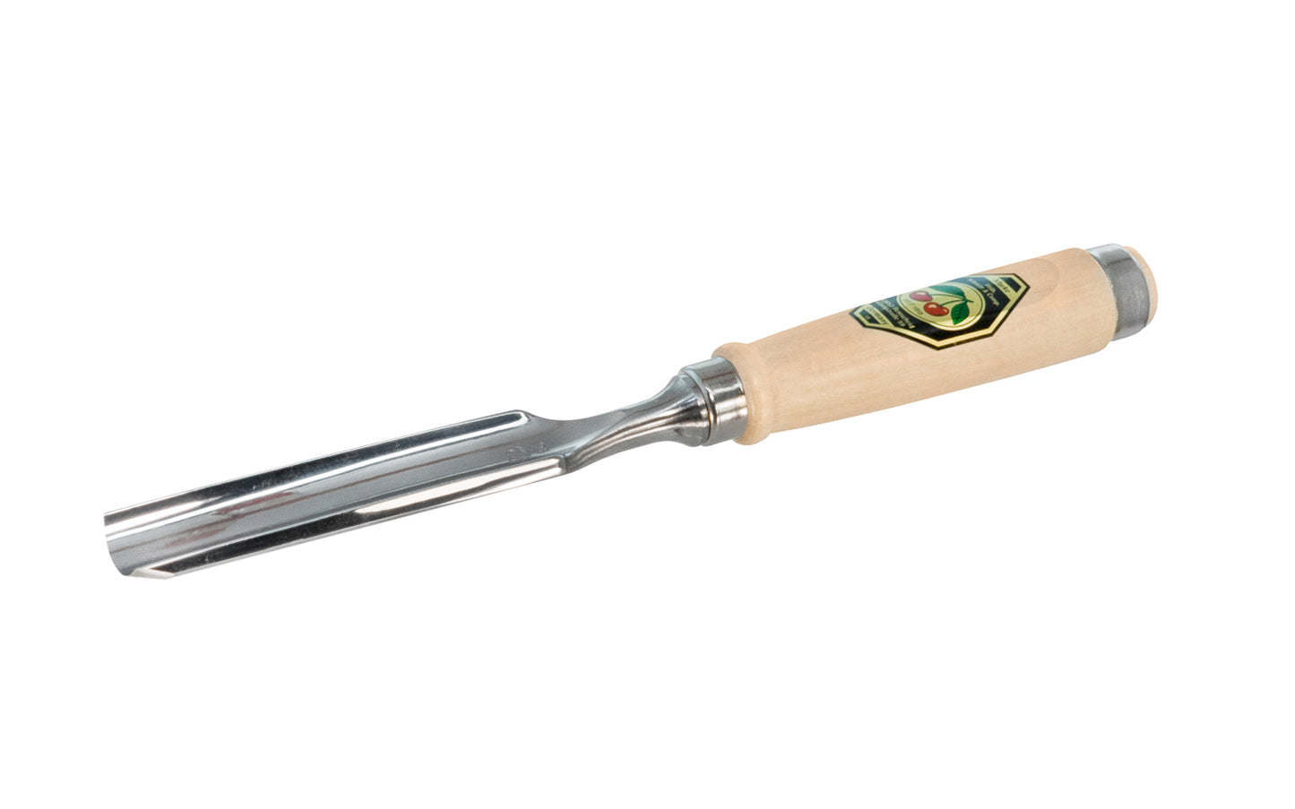 A 28 mm Firmer Gouge made by Two Cherries in Germany. It has an curve in the length of the blade with the cutting bevel on the outside, also known as an out-cannel gouge, good for use in working concave hollows. Two Cherries Series 1431. Made in Germany.Two Cherries Tools is a family owned Germany company that has been in business for over 155 years. Since 1858, they have been producing high quality woodworking tools using the finest steel available.