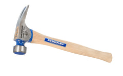 Vaughan's California Framer Model CF1 combines features of two of the most popular tools into a rugged, heavy construction hammer. The smoothly swept claws were borrowed from Vaughan's "999" Rip Hammer, & the extra large striking face, hatchet eye & sturdy handle are a heritage of the Rigbuilder's Hatchet. The hatchet style handle is best grade, second growth hickory. To provide extra strength, the handle has a large cross section where it joins the fully polished head. Mill waffle face on framing hammer. Rust-resistant powder coat finish. Hickory hardwood handle. Made in USA. -