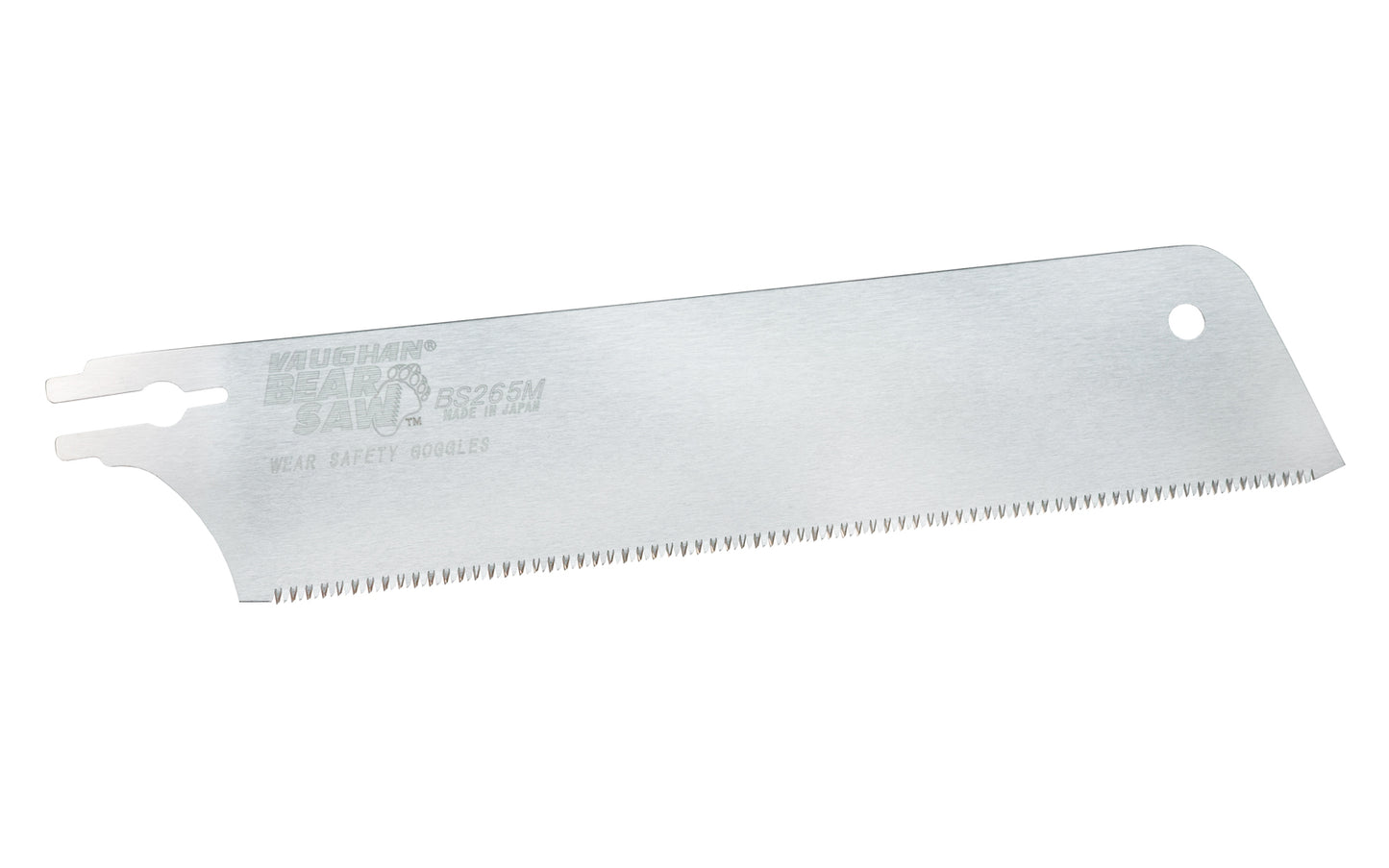 A replacement Japanese pull-saw blade for the Vaughan "Bear Saw" pull saw. The blade is great for general lumber, hardwoods, softwoods, plywood, dry bamboo, plastics & laminates. The blade has 14 TPI which makes for nice medium to fine cuts on materials. Most woodworkers would find this as a good utility saw blade. See here for the Vaughan Saw #BS250H. Made in Japan.About Japanese Pull Saws