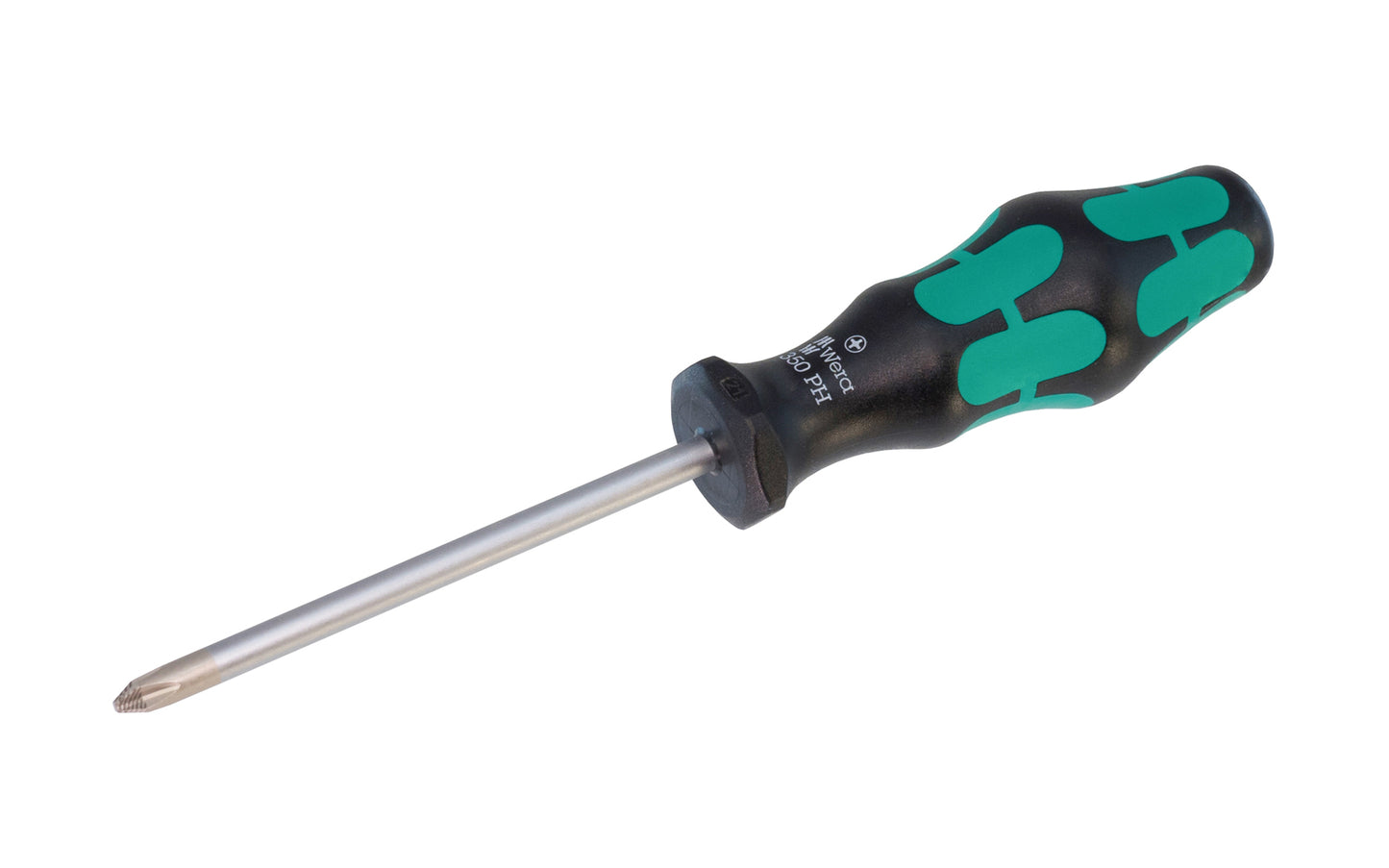 High quality Wera Phillips Screwdriver. Multi-component Kraftform Plus handle for pleasant, ergonomic working that makes blisters & calluses a thing of the past. Hard gripping zones for high working speeds whereas soft zones ensure high torque transfer. "Take it easy" tool finder with color coding according to profiles & size stamp - for simple & rapid accessing of the required tool. The hexagonal non-roll feature prevents any rolling away at the workplace. Kraftform Series 350PH screwdrivers. Made in Czech Republic. -