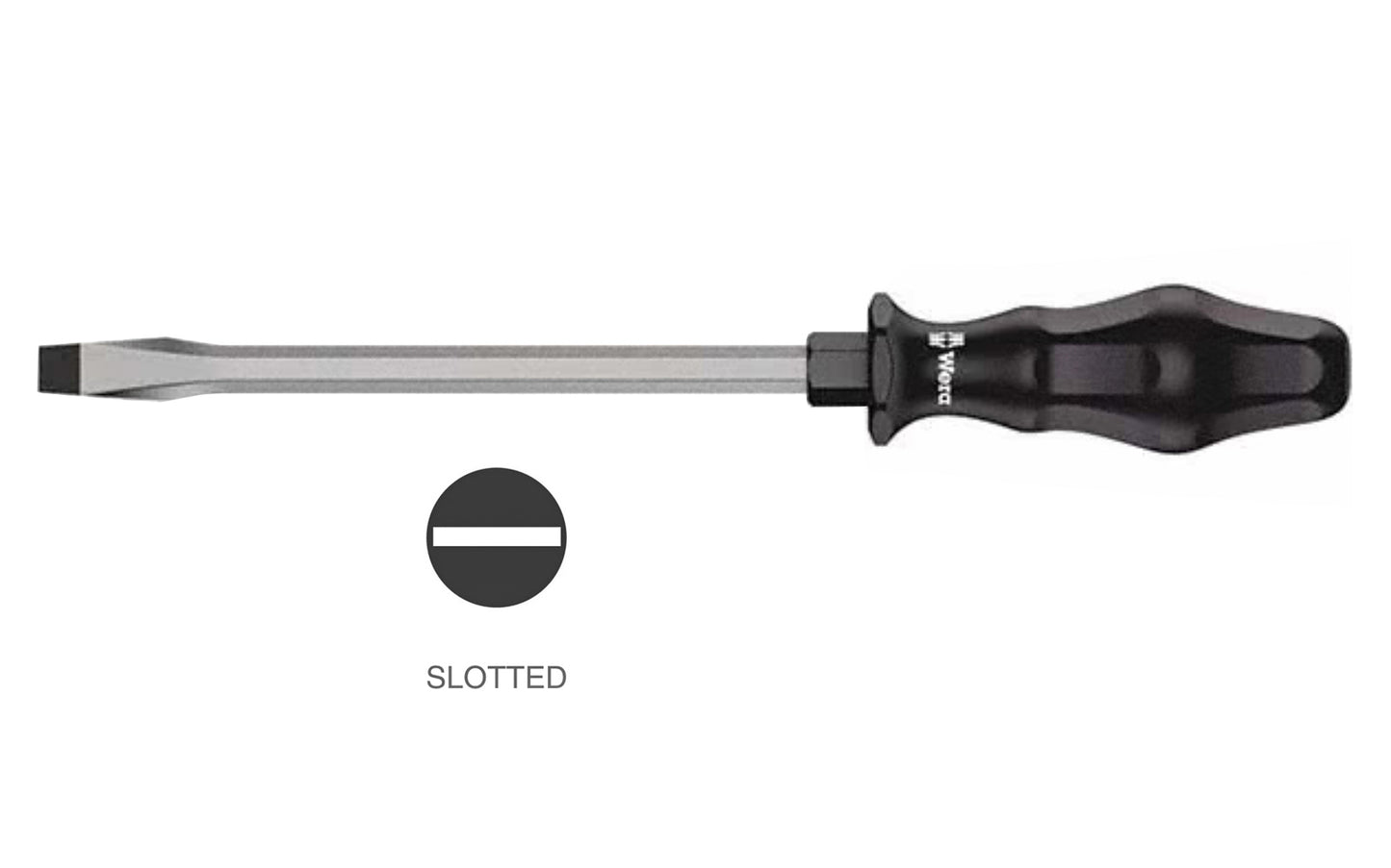 Product Slot Size Shaft Length Overall Length Model # Wera Slotted Screwdriver - 2.0 mm x 12 mm 2.0 mm x 12 mm 8" 12-1/2" 018272 Wera Slotted Screwdriver - 2.5 mm x 14 mm 2.5 mm x 14 mm 10"