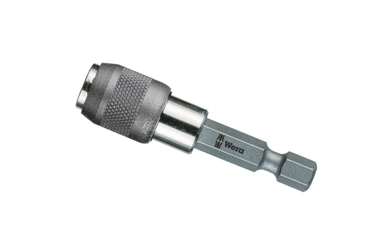 Wera Universal bit holder for mounting bits with 1/4" external hexagon drive as per DIN ISO 1173-C 6.3. With quick-release chuck for quick bit changes. The strong permanent magnet holds the bits firmly. 1/4" hexagonal, suitable for screwdriver machines with mounting as per DIN ISO 1173-F 6.3. Made in Czech Republic. -