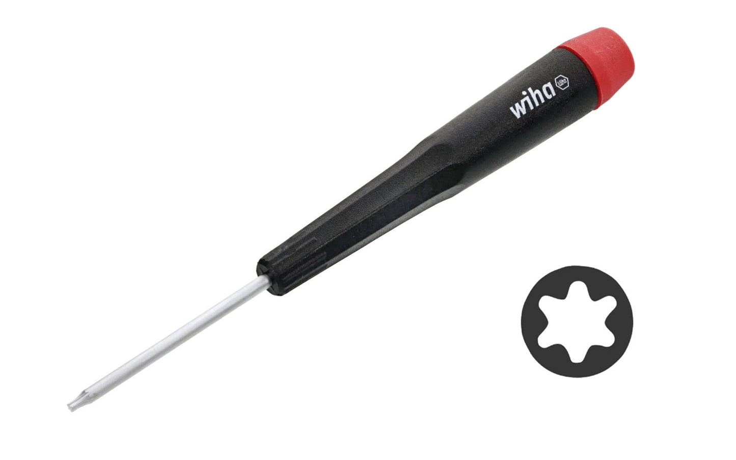 A high quality Wiha Torx precision screwdriver 6-piece set made out of hardened CRM72 tool steel. Excellent for working on small components & modern electronics. The classic precision style screwdriver has a hex profile finger grip for precise torque, a tapered handle, & a smooth-turning cap for rapid rotation. 6-point TORX screwdriver made by Wiha Tools. Made in Germany. -